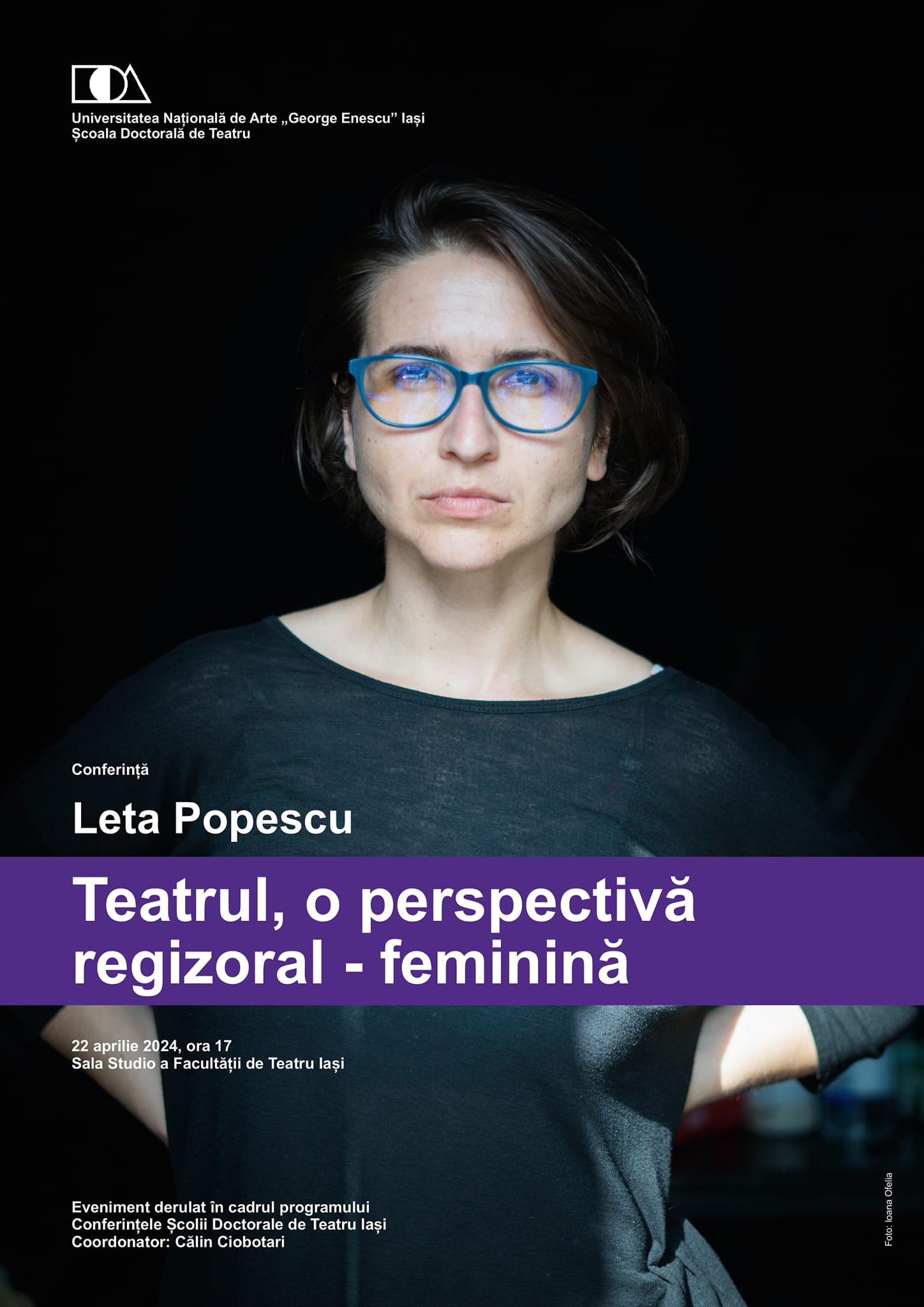 Seria conferințelor organizate de Școala Doctorală de Teatru a Universității Naționale de Arte „George Enescu” din Iași continuă. De această dată, regizoarea Leta Popescu a vorbit despre perspectiva regizoral – feminină, în teatru, într-o discuție moderată de conf. univ. dr. Călin Ciobotari, directorul Școlii Doctorale de Teatru.