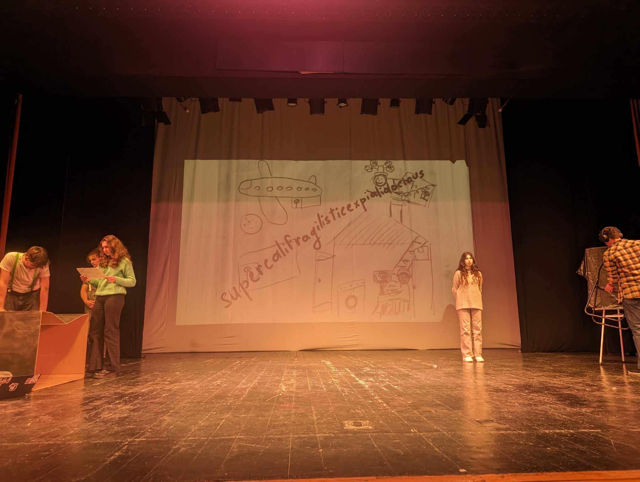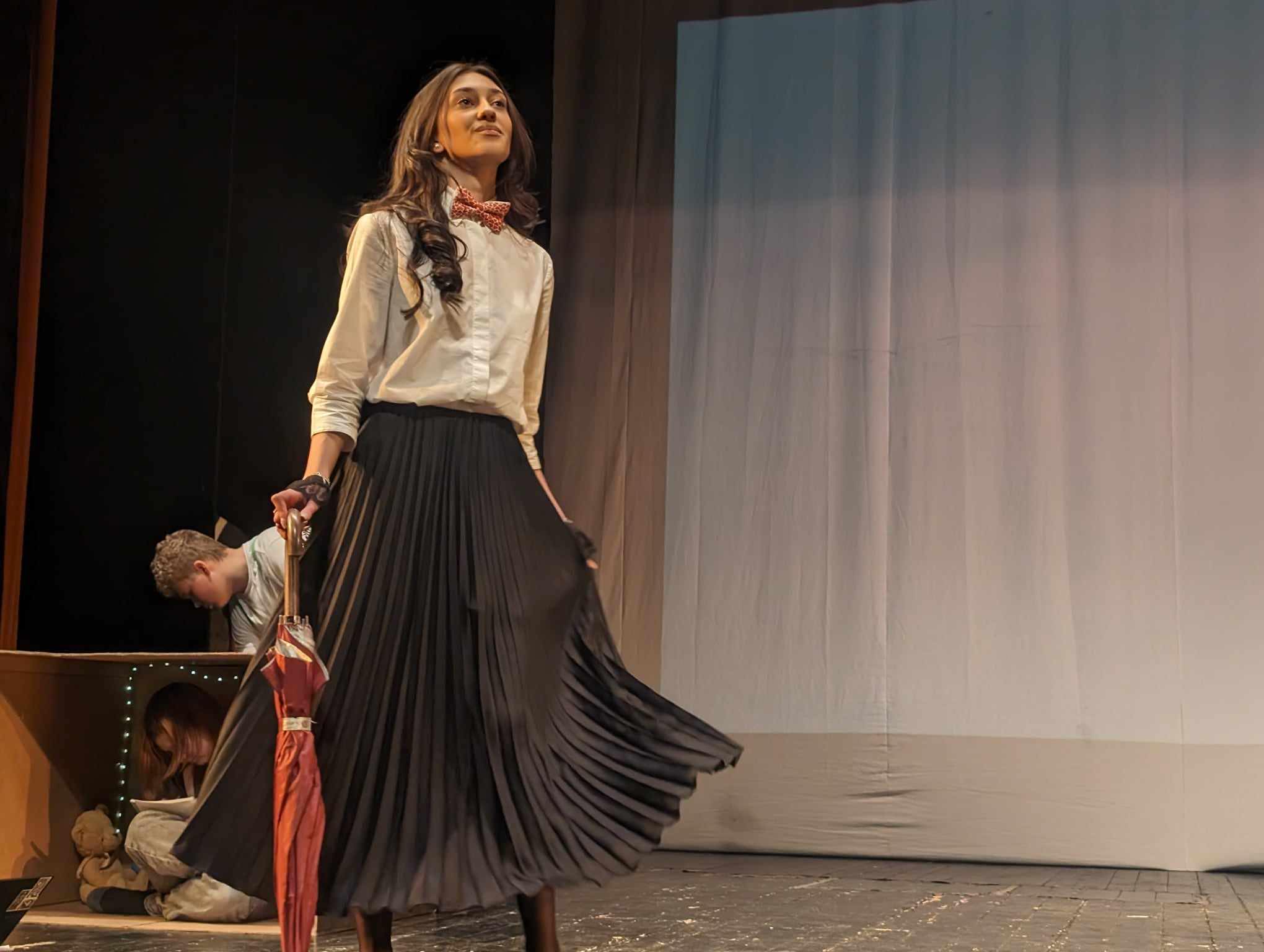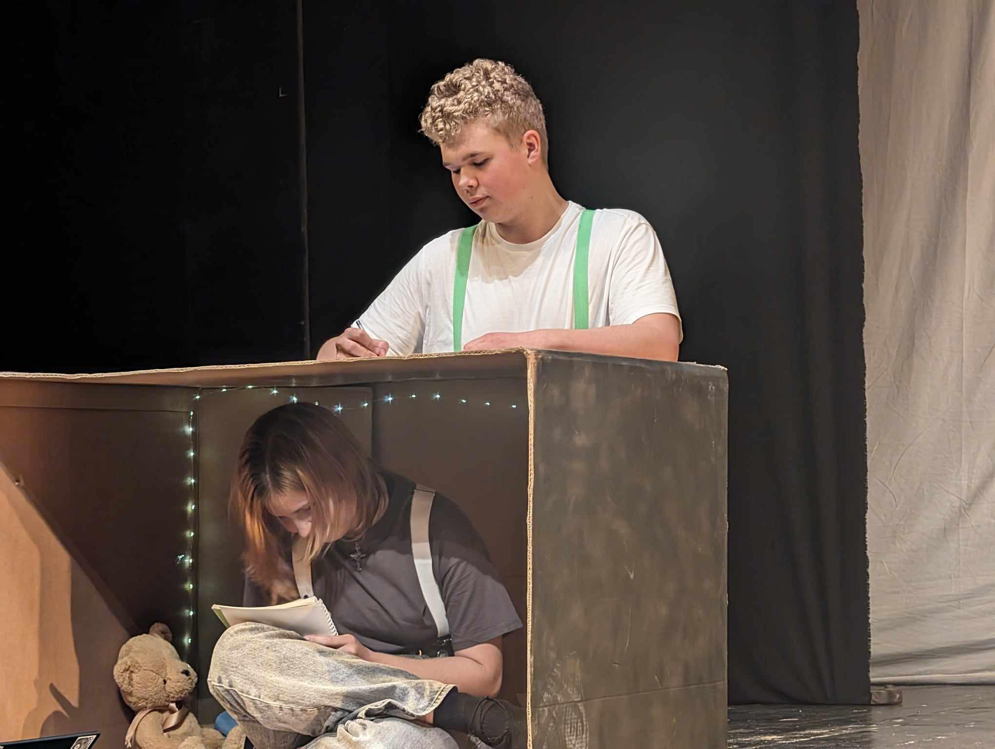 Andreea Daraban: Așadar, elementele de recuzită sunt puține și folosite intens de fiecare dată, pentru că și efortul pentru a face un spectacol cu foarte multă recuzită este unul pe măsură. Și pentru că tot am ajuns la acest aspect, cine susține toată activitatea aceasta teatrală de la Colegiul ”Mihai Eminescu”?
