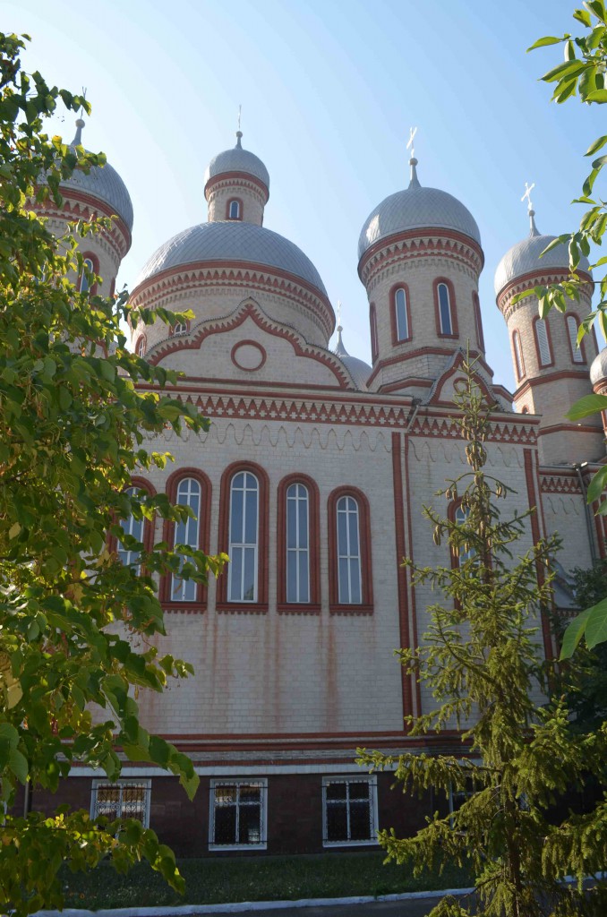 [6] În aprilie 1988, a avut loc sfințirea locului. În mai puțin de patru ani, au fost înălțați pereții catedralei. Forma și amplasarea turlelor a fost elaborată de preotul Pavel Vuluță, ideile sale fiind transpuse de meșterii din Tighina. Cele cinci cupole îi simbolizează pe Isus Cristos și pe cei patru evangheliști. În toamna anului 1997, frescele au acoperit întreaga suprafață a pereților, tavanului și bolților, fiind considerate una dintre cele mai frumoase creații ale pictorului Achițenie.