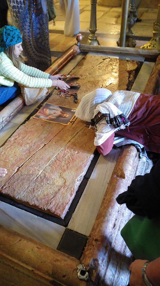 În Ierusalim am coborât Muntele Măslinului, cu un scurt popas de meditaţie în Grădina Ghetsimani. Am parcurs Drumul Crucii (Via Dolorosa) până la Biserica Sfântului Mormânt, într-un timp al începuturilor prinse în buclă. Am ajuns şi la Zidul Plângerii, locul cel mai sacru pentru evreii din întreaga lume. Am dat mâna cu Abid Joudeh, un musulman care păstrează cheia Bisericii Sfântului Mormânt şi care se trezeşte în fiecare dimineaţă la ora 4:00 pentru a se prinde în ritualul deschiderii lăcaşului de cult.