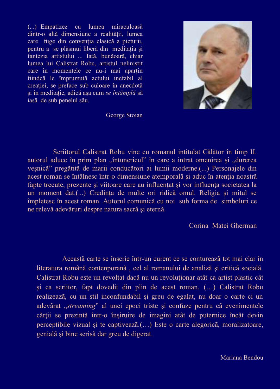 După toate acestea, s-au prezentat cărțile: volumul al doilea CĂLĂTOR ÎN TIMP (Apocalipsa din Deal), carte semnată de către scriitorul Calistrat Robu, carte apărută, anul acesta, la Editura PIM din târgul Iașilor.