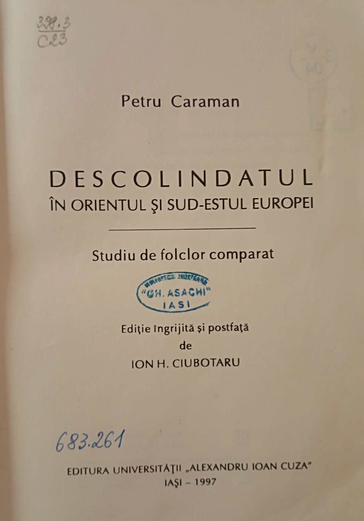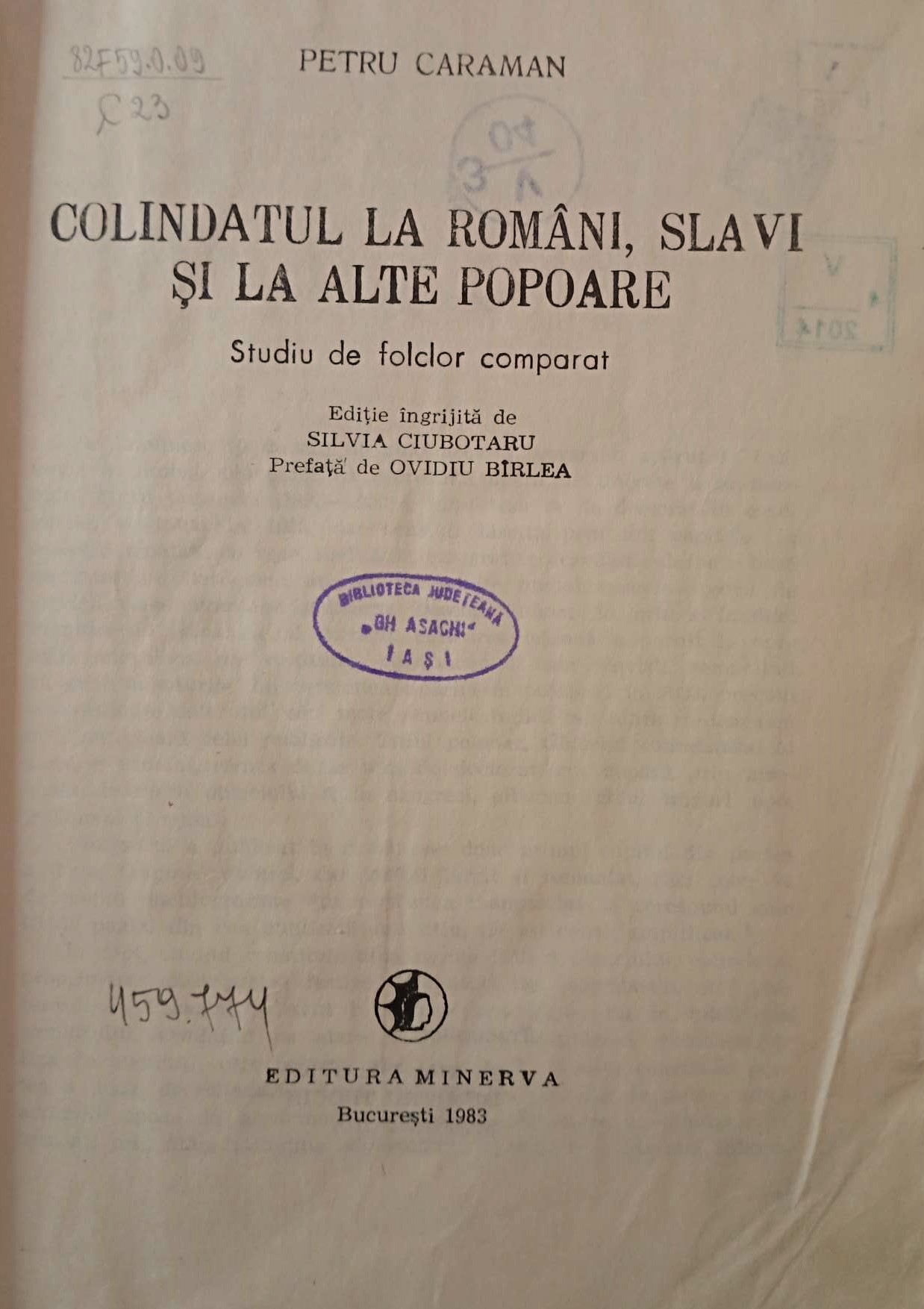Este vorba despre: COLINDATUL LA ROMÂNI, SLAVI ȘI LA ALTE POPOARE. Studiu de folclor comparat, ediție îngrijită de etnolog Silvia Ciubotaru, cu o prefață de etnolog Ovidiu Bîrlea, carte care a văzut lumina tiparului la Editura Minerva, București, 1983 și DESCOLINDATUL ÎN ORIENTUL ȘI SUD-ESTUL EUROPEI. Studiu de folclor comparat, ediție îngrijită și postfață de Ion H. Ciubotaru, lucrare care a apărut la Editura Universității „Alexandru Ioan Cuza” Iași, în anul 1997.