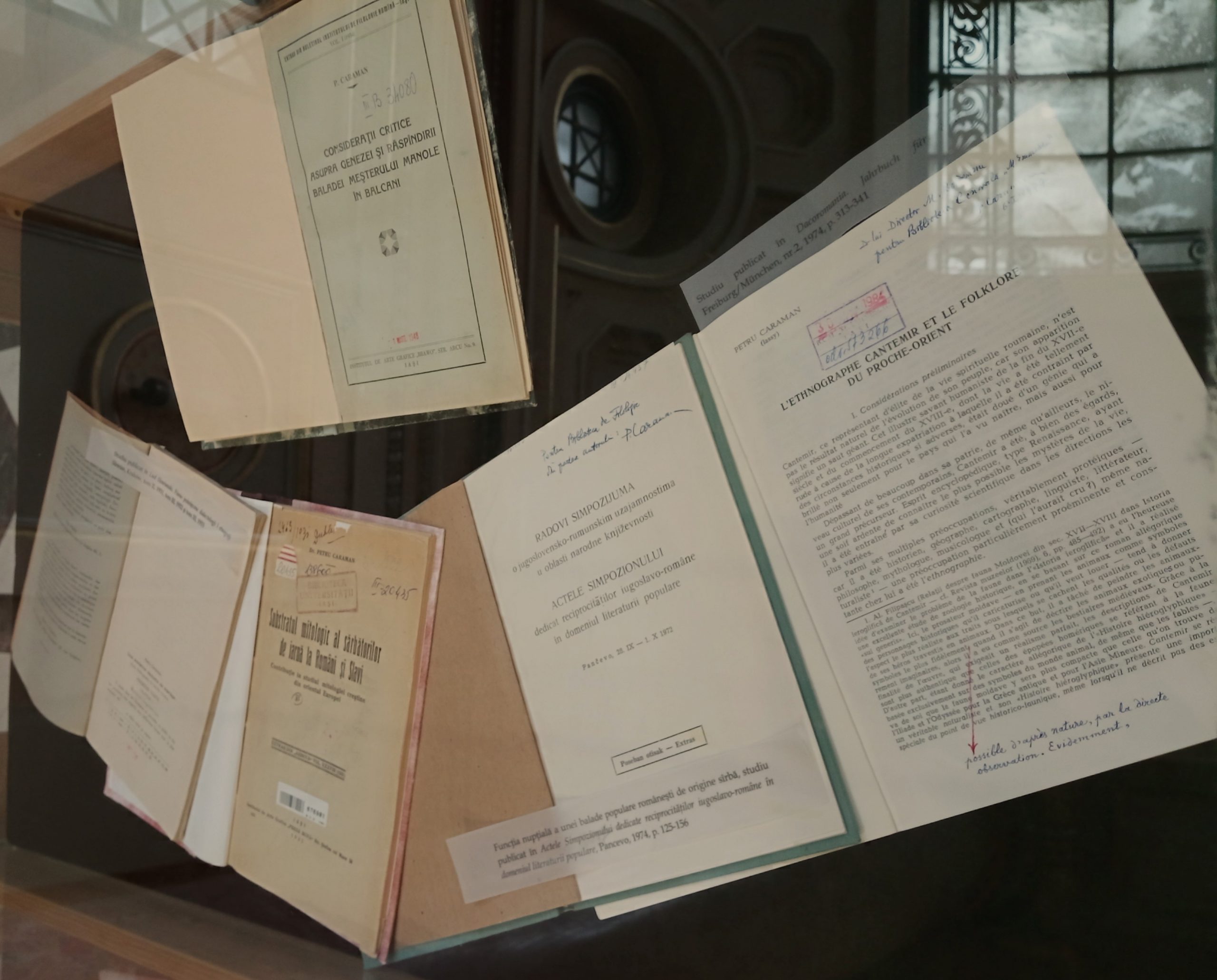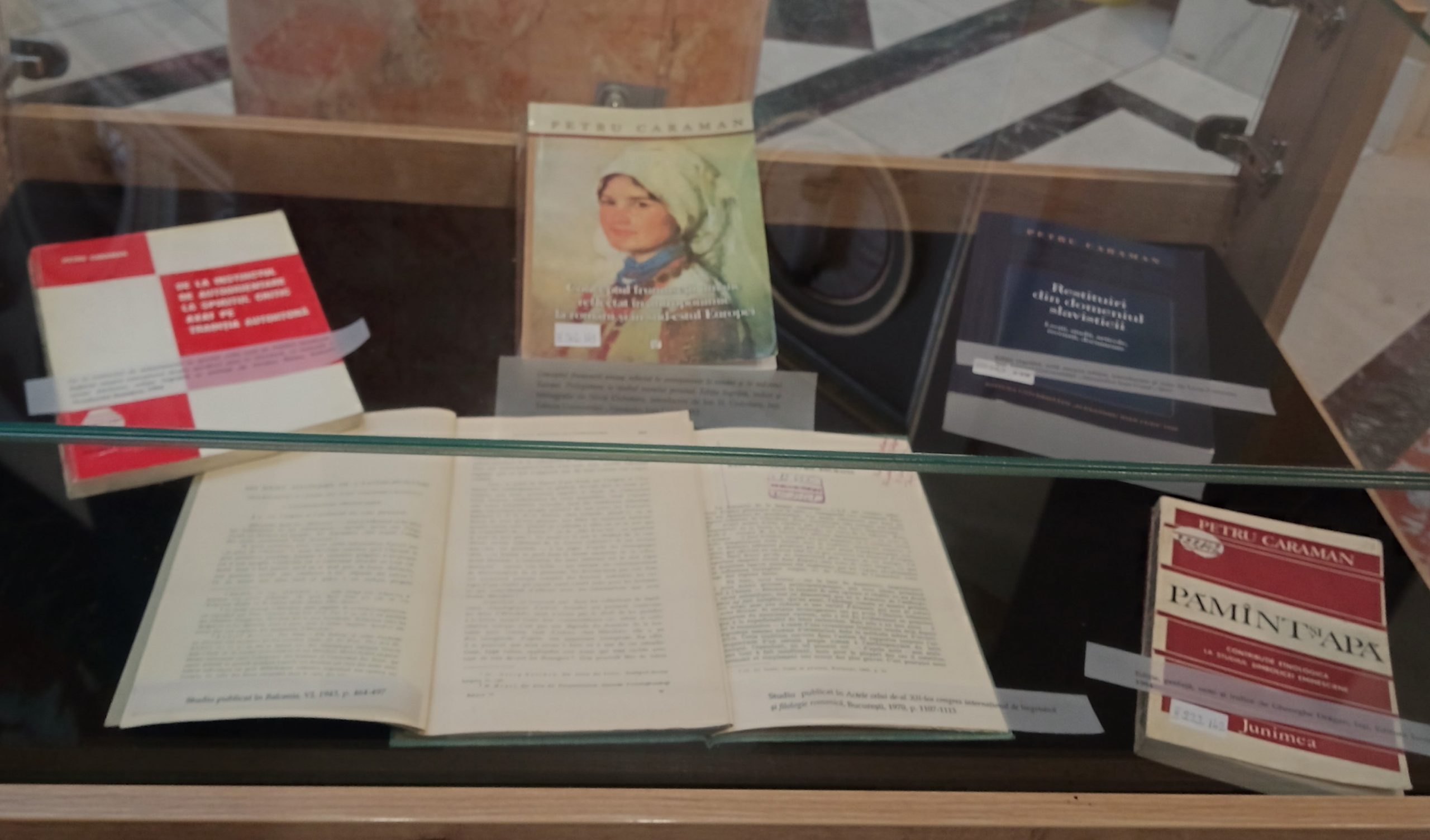 Pe lângă cele două conferințe susținute de către prof. univ., dr. în filologie, Ion H. Ciubotaru, membru de onoare al Academiei Române – Petru Caraman – 125 de ani de la naștere și de către Ioana Repciuc, specialist în filologie – Receptarea operei profesorului Petru Caraman la nivel internațional, subiect al unei viitoare ediții a emisiunii noastre, am putut admira și o interesantă expoziție de carte, expoziție care a adus în atenția publicului opera savantului Petru Caraman (1898-1980), considerat de către specialiști cel mai de seamă etnolog român și unul dintre cei mai importanți reprezentanți ai domeniului din Europa.