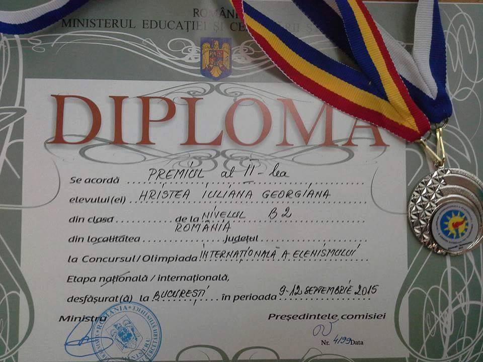 A avut șansa de a reprezenta România la Olimpiada Internațională a Elenismului, iar la ediția din acest an a fost recompensată cu medalia de aur.