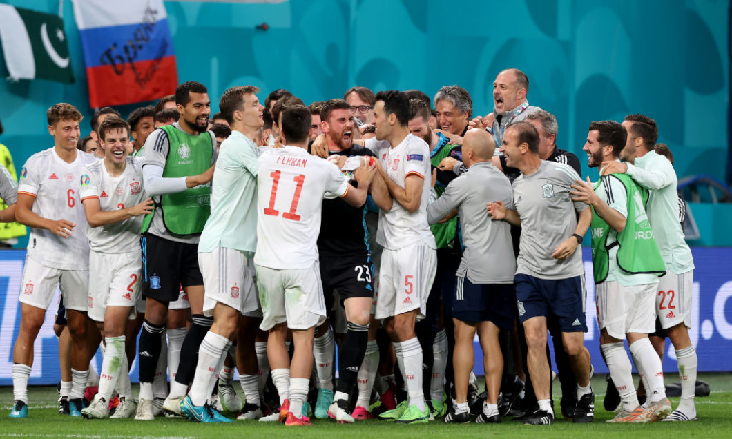 Busquets a ratat a 6-a lovitură consecutivă de la 11 m pe care o primise „La Furia Roja” într-o competiție majoră… A mai eșuat Rodri (a apărat Sommer), dar, în „contrapartidă”, au executat foarte slab Schär, Akanji, Vargas… 3-2 pentru Spania (s-au dovedit a fi suficiente reușitele lui Olmo, Moreno și Oyarzabal)…