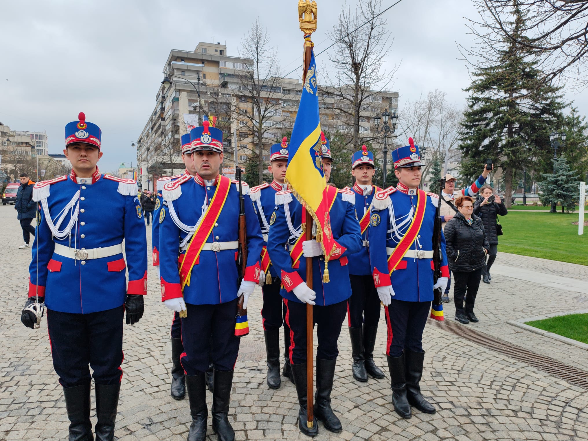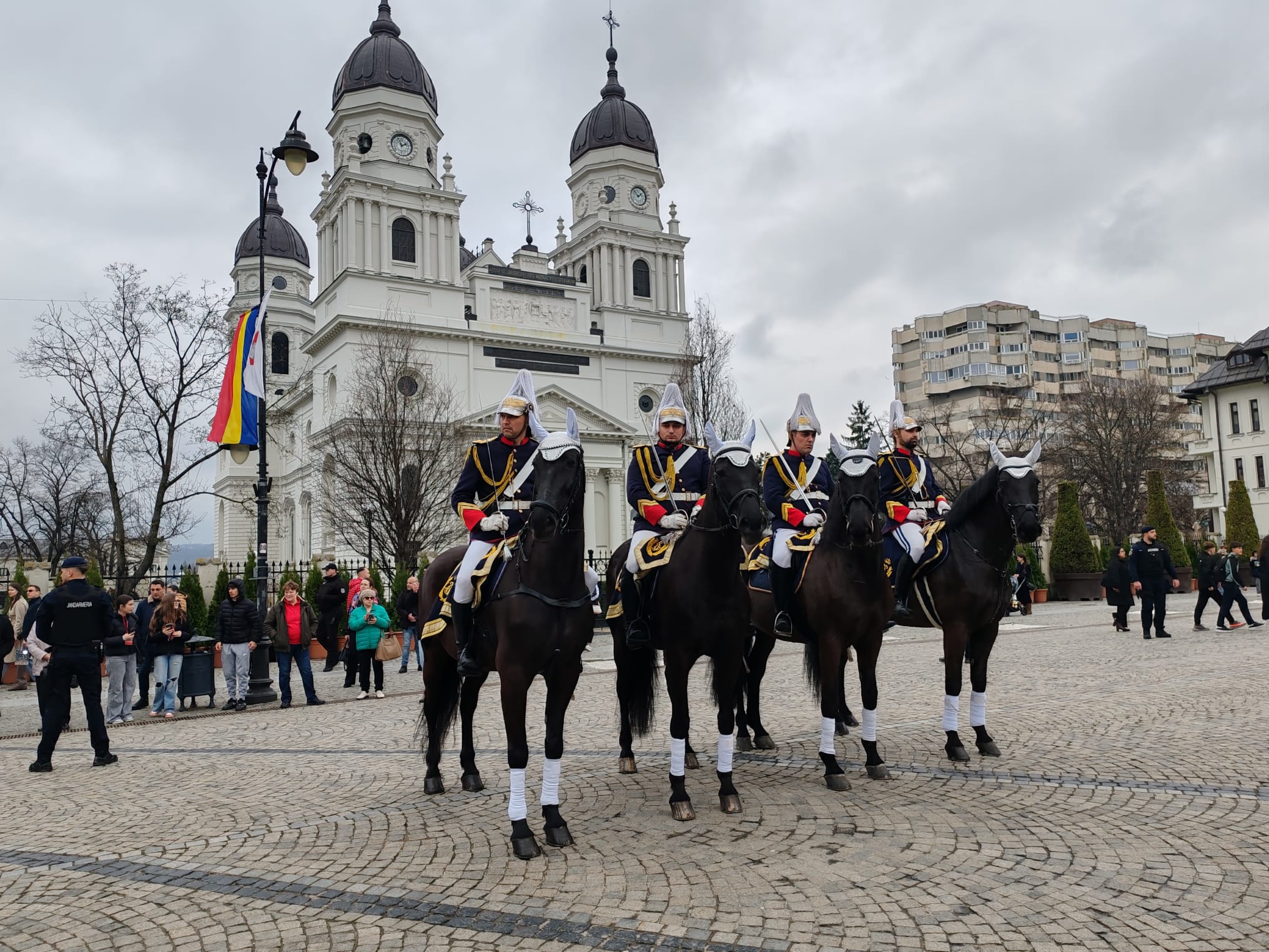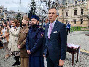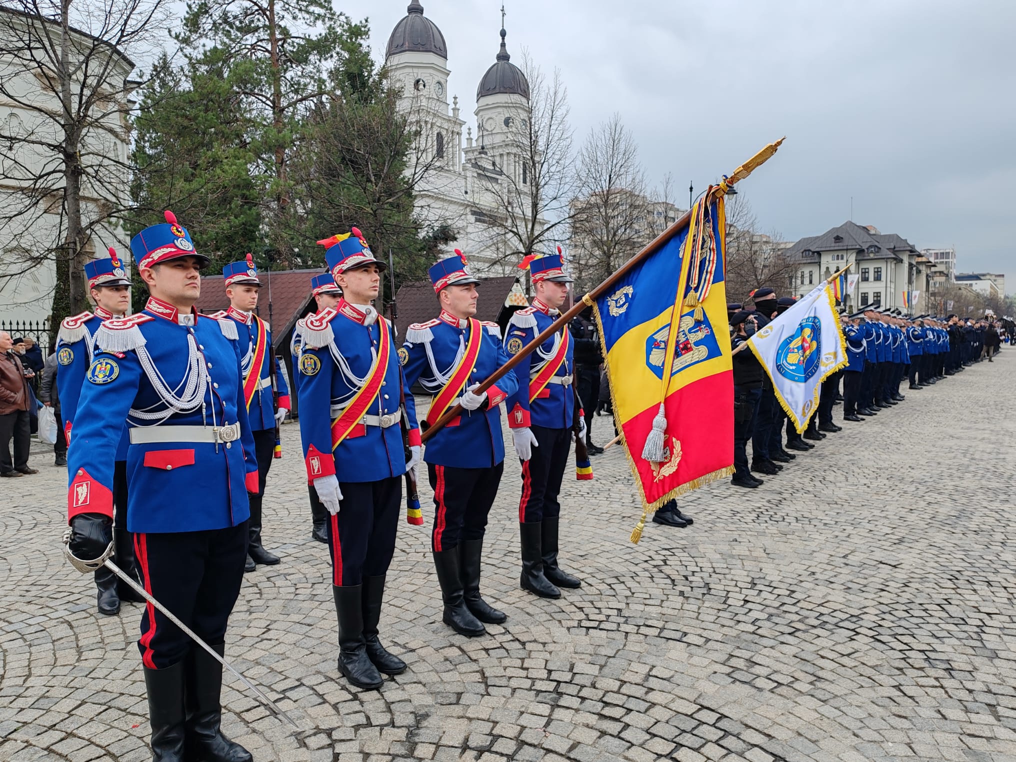 Colonel Cosmin Chesaru, comandatul Inspectoratului Județean de Jandarmi Iași: 176 de ani de Jandarmerie Română, 176 de ani de Jandarmerie Română la Iași. Am spus mereu că Jandarmeria Română a fost înființată la Iași. Ne-am bucurat să avem alături descendenții întemeietorului Jandarmeriei, principele Grigore Alexandru Ghica. Am avut în formație reprezentanți și din prezentul, dar și din viitorul Jandarmeriei: mă refer la jandarmii ieșeni, jandarmii de la București, Garda de Onoare a Jandarmeriei Române, detașamentul de Cavalerie al Direcției Generale de Jandarmi a Municipiului București, Academia de Poliție, Școala Militară de Subofițeri Jandarmi „Petru Rareș” Fălticeni și Gruparea de Jandarmi Mobilă de la Bacău. Nu putem uita, ne sunt alături întotdeauna, prietenii și camarazii noștri din Republica Moldova, Inspectoratul General pentru Carabinieri.