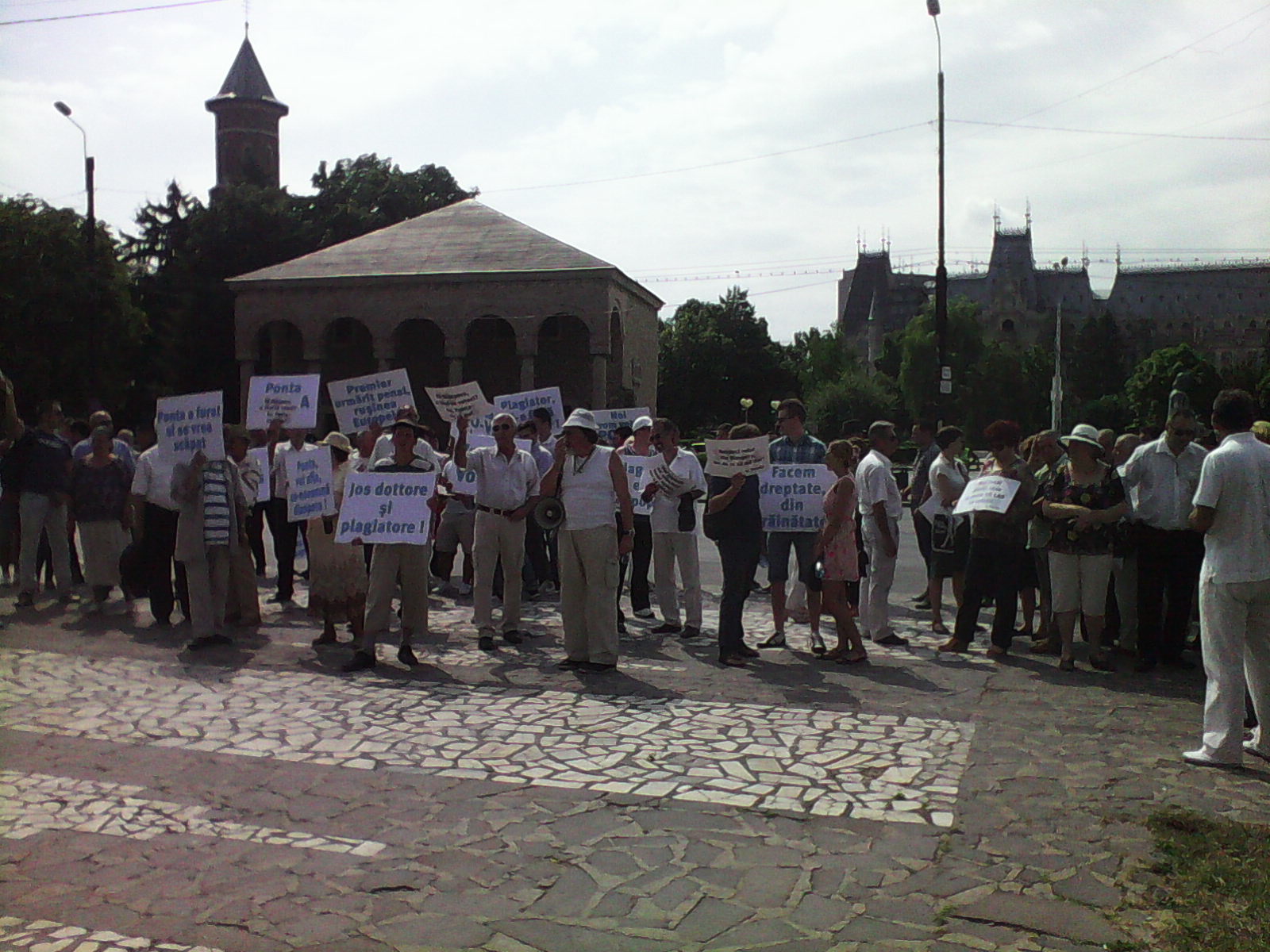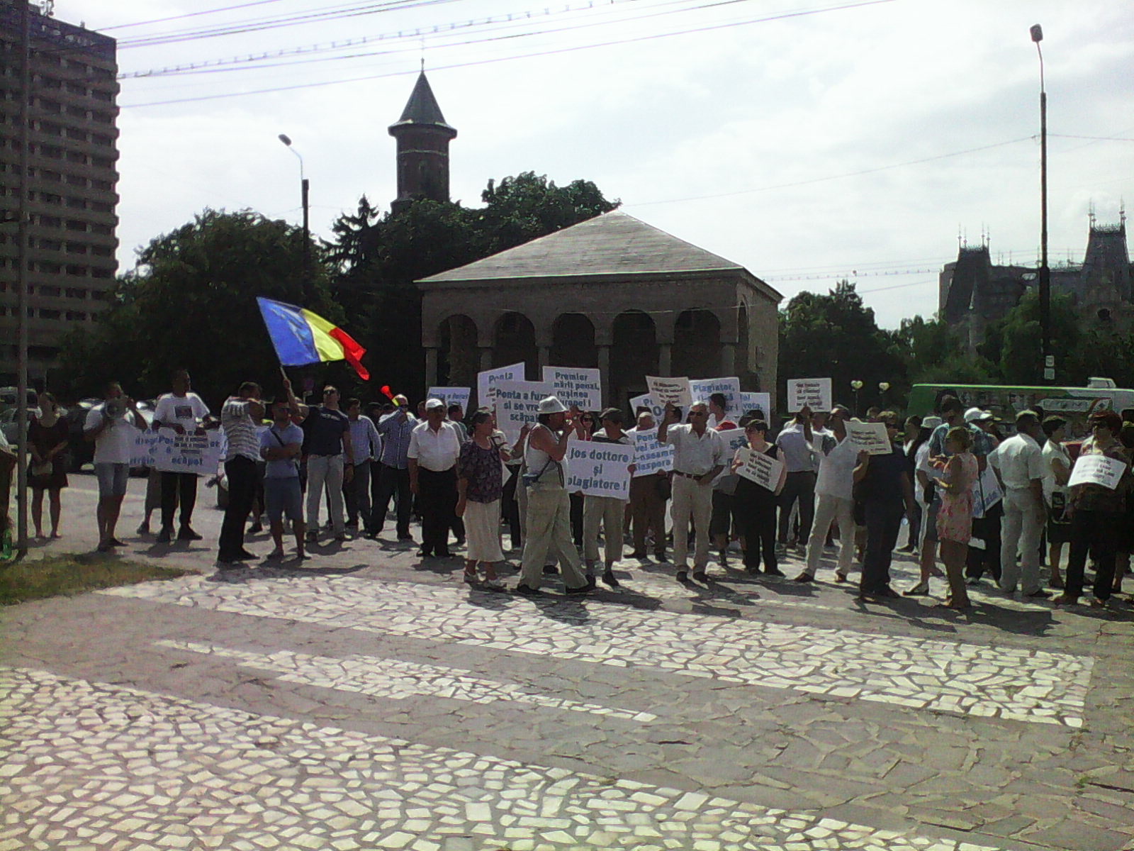 La Iași, aproximativ o sută de persoane au ieșit în fața Prefecturii cu pancarde și au scandat împotriva Guvernului Ponta: