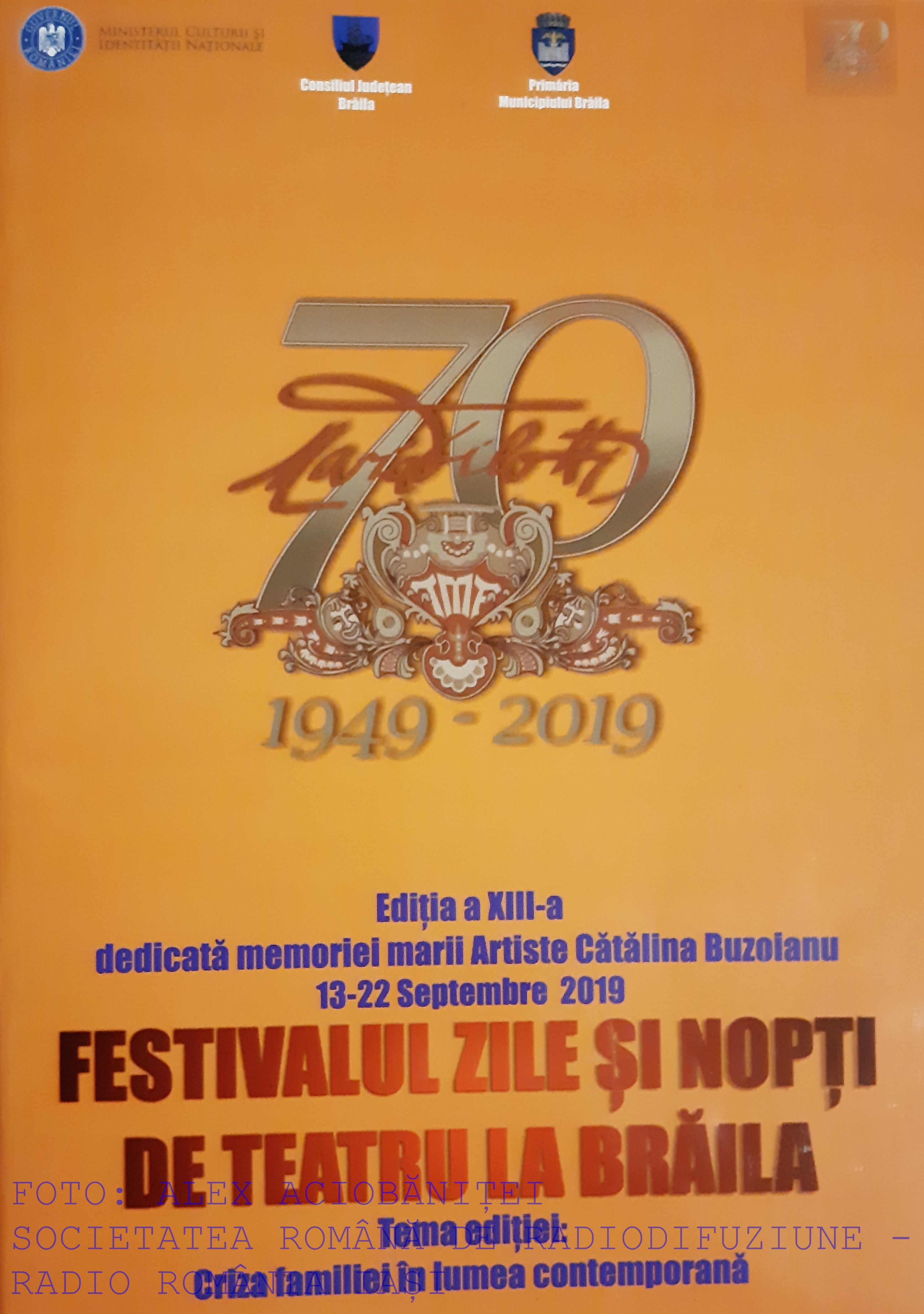 În perioada 13 – 22 septembrie, a avut loc cea de a XIII-a ediție a Festivalului ”Zile și nopți de teatru la Brăila”, eveniment organizat de prestigiosul teatru ”Maria Filotti” și promovat de Radio România Iași.