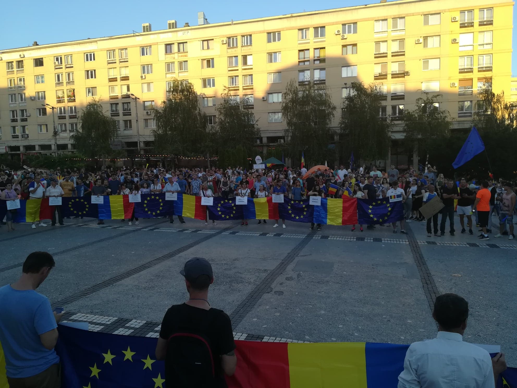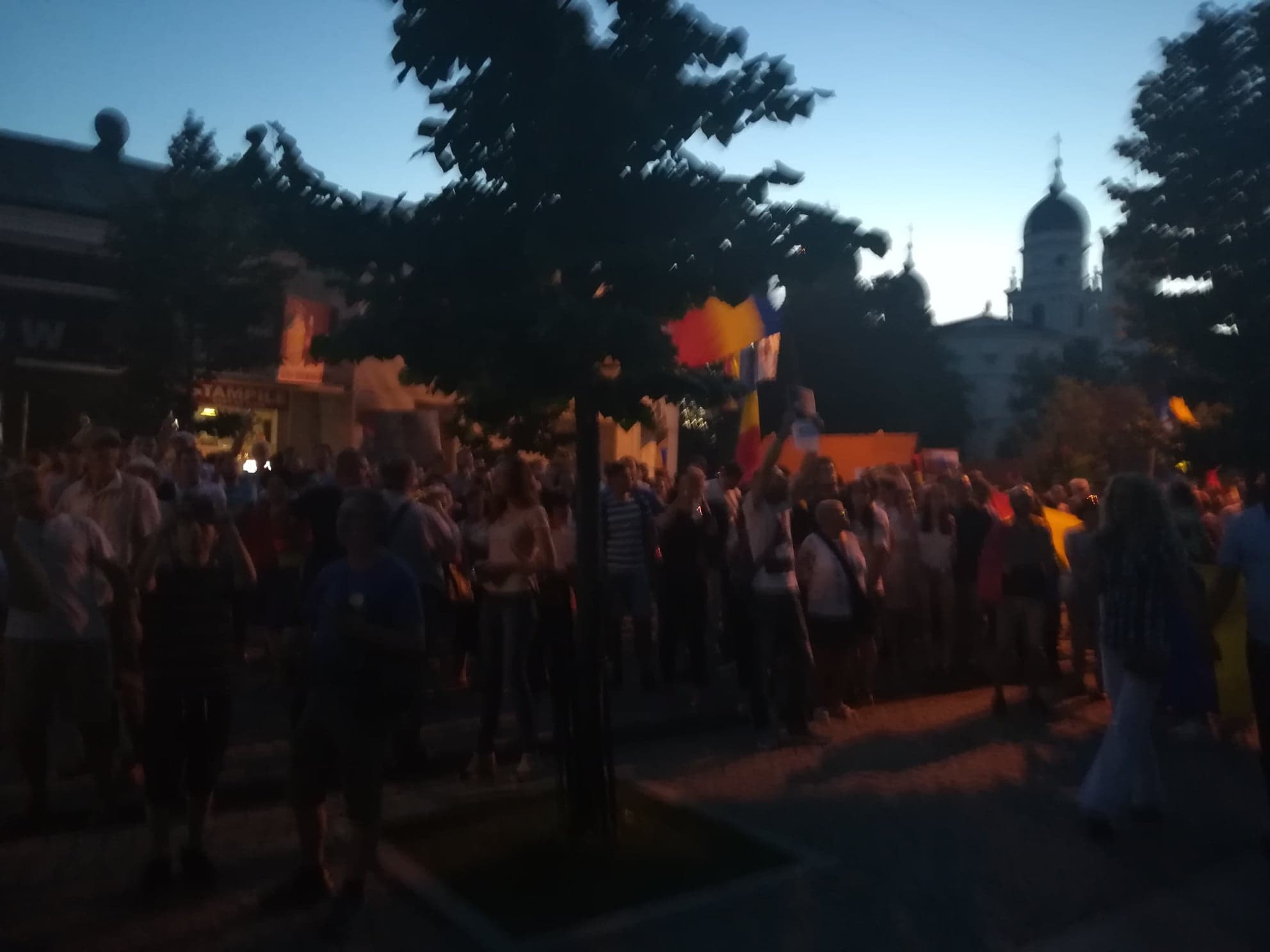 Apoi, protestatarii au plecat în marș, pe Bulevardul Ștefan cel Mare.Coloana de manifestanți s-a oprit în fața sediului PSD, și din nou, s-a strigat împotriva acestui partid și a fost cerută demisia Guvernului.Marșul a continuat prin fața sediului Prefecturii, pe Bulevardul Independenței, și înapoi, în Piața Unirii. Protestul a fost unul pașnic. Jandarmii și polițiștii au însoțit coloana de manifestanți, dirijând traficul, pentru ca aceasta să poată trece.