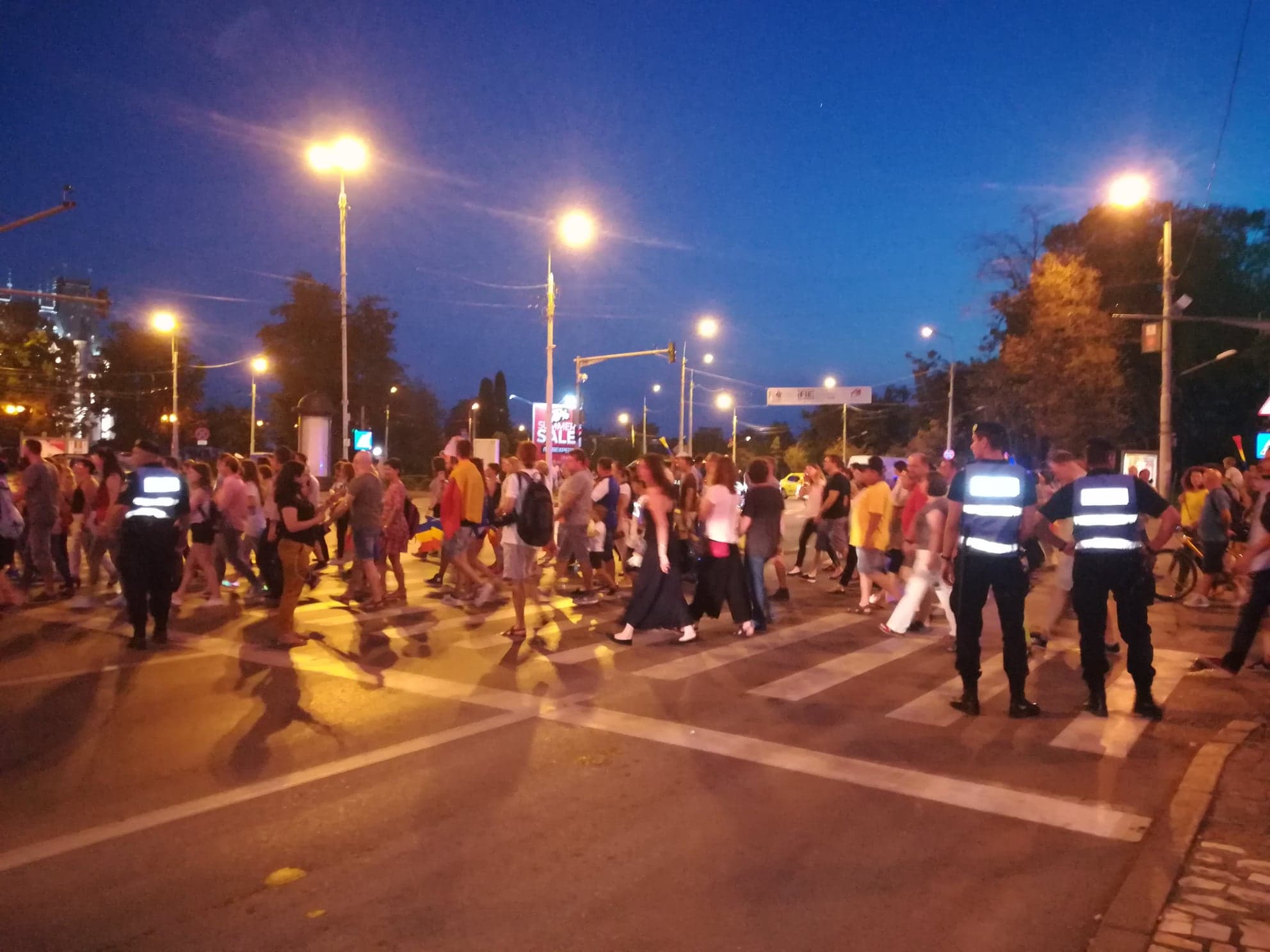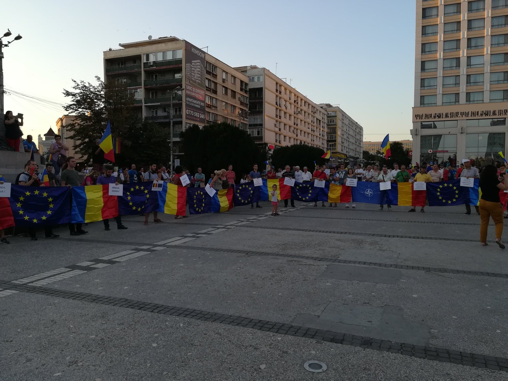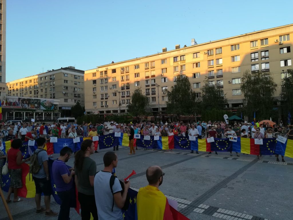 Ajunși, din nou, în Piața Unirii, protestatarii au intonat Imnul României.