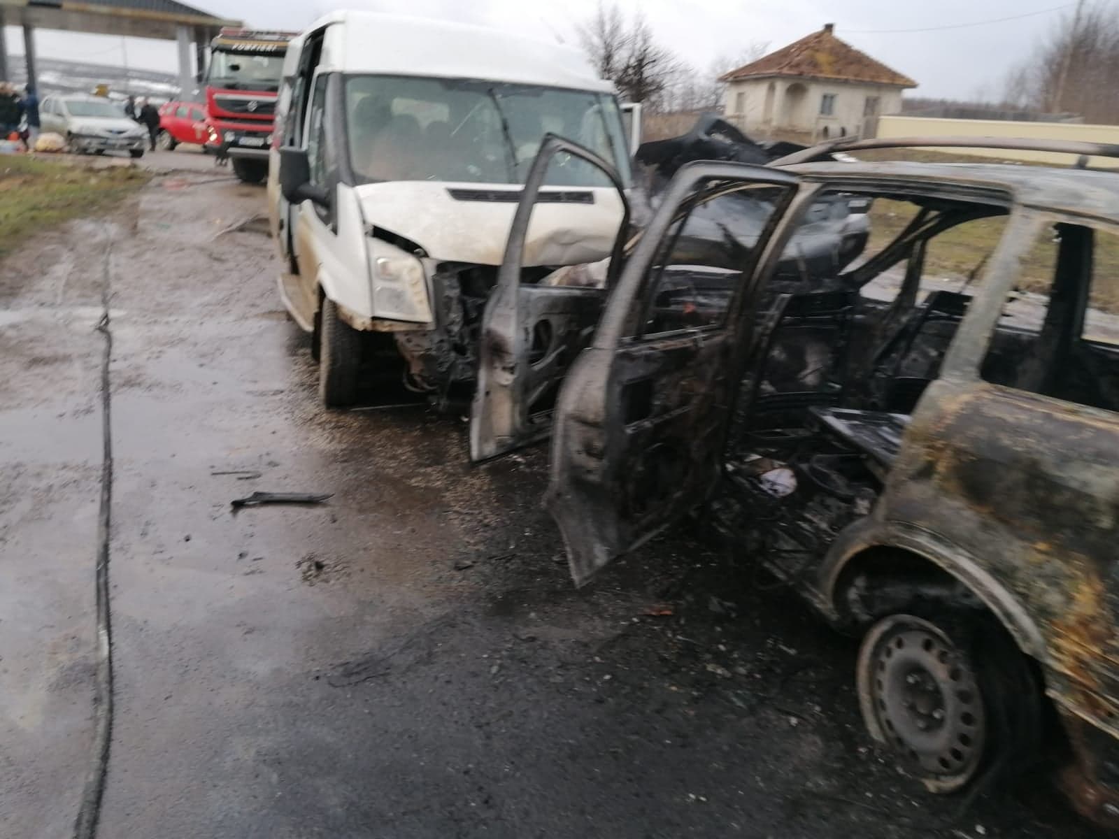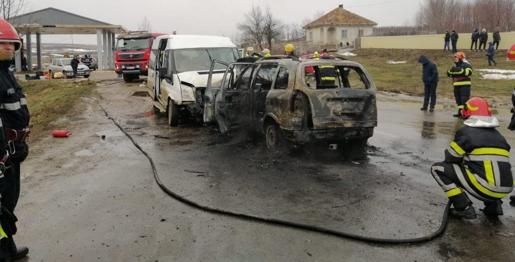 Imediat după momentul impactului, autoturismul a luat foc. Cei trei pasageri au reușit să iasă din maşina. În interior, pe bancheta din spate, a rămas o femeie inconştientă. Un pompier aflat în timpul liber, plt. maj. Cătălin Grindiei, a încercat să stingă incendiul, nu a reuşit şi ajutat de alți participanți la trafic a reușit să scoată victima inconştientă din autoturism.