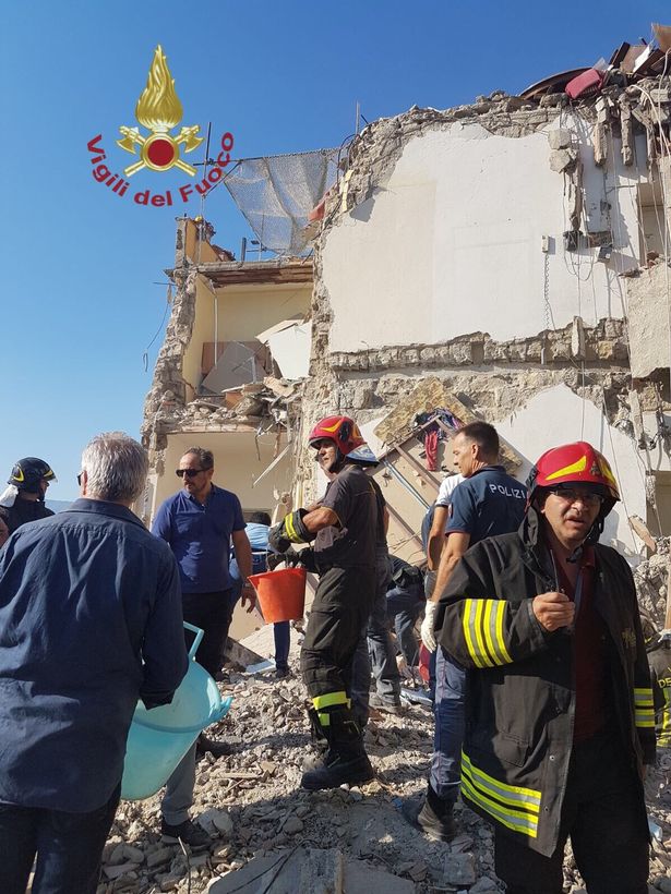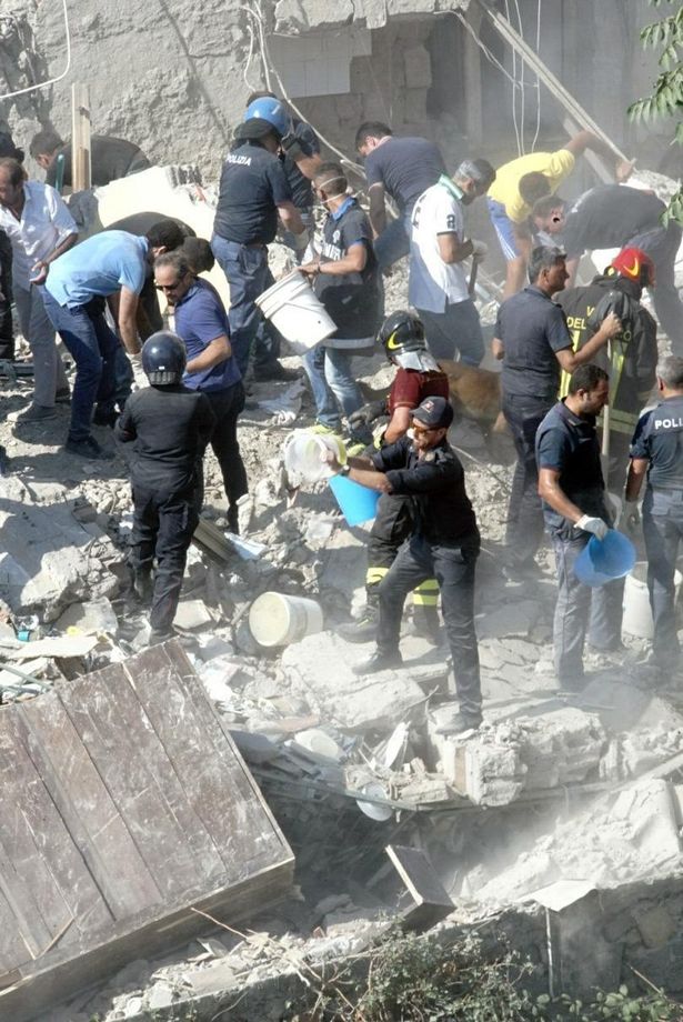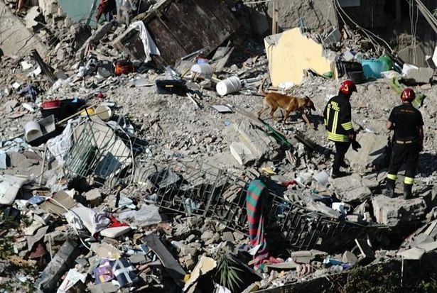 Aproximativ 30 de pompieri, precum şi zeci de voluntari şi apropiaţi ai dispăruţilor căutau prin dărâmături cu mâinile goale, oprindu-se din când în când pentru a cere să se facă linişte astfel încât să poată auzi eventuale strigăte de ajutor.