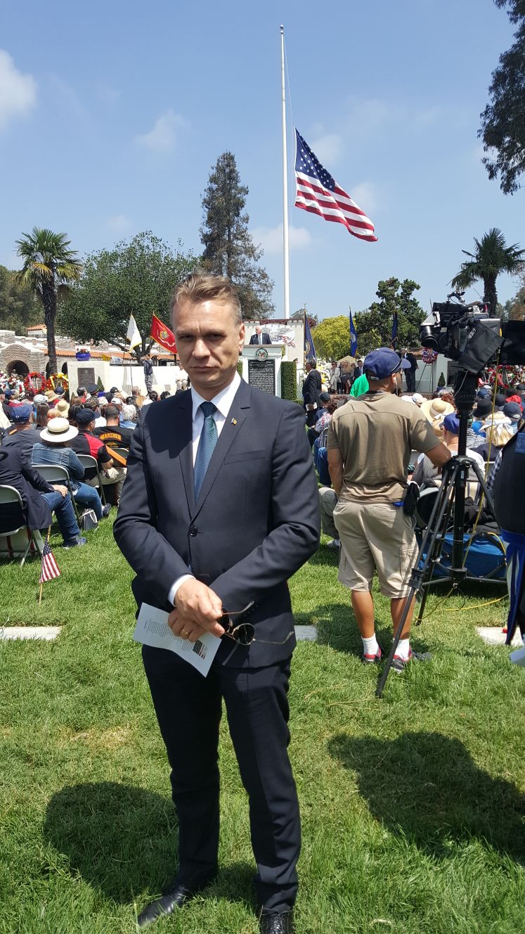Am împlinit, de curând, un an de când am început misiunea aici la Los Angeles. Pentru mine este o mare onoare să reprezint țara noastră pe coasta de vest a Americii, este o mare onoare să-mi reprezint țara oriunde în lume. Însă Misiunea de aici are o semnificație cu atât mai importantă pentru faptul că Statele Unite ale Americii sunt dintre cei mai importanți parteneri strategici ai României, iar din punct de vedere al apărării, cu siguranță, cel mai important. Cum bine știți, relațiile bilaterale dintre România și Statele Unite ale Americii se află la cel mai înalt nivel. Parteneriatul strategic a împlinit 20 de ani, la 11 iulie 2017, vor fi 21 de ani în curând, în care dimensiunea politico – strategică a ajuns la cel mai mare nivel posibil, optim, noi fiind interesați (atât noi cât și partenerii americani) să aducem la același nivel optim și dimensiunile cultural – academică și în special cea economică și comercială.
