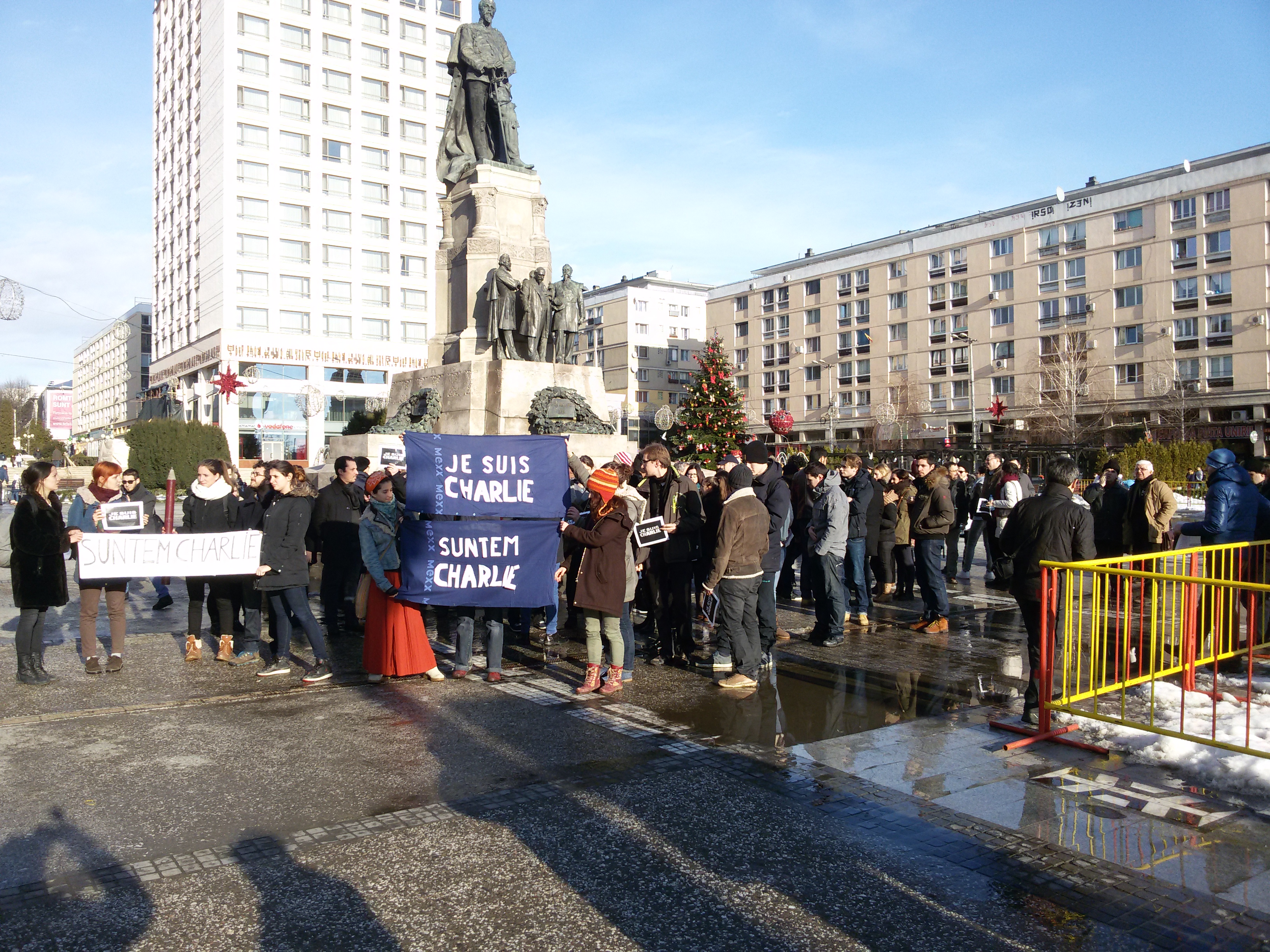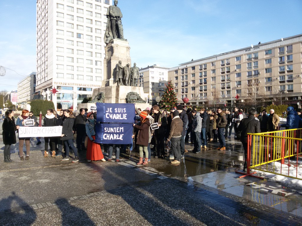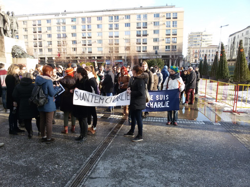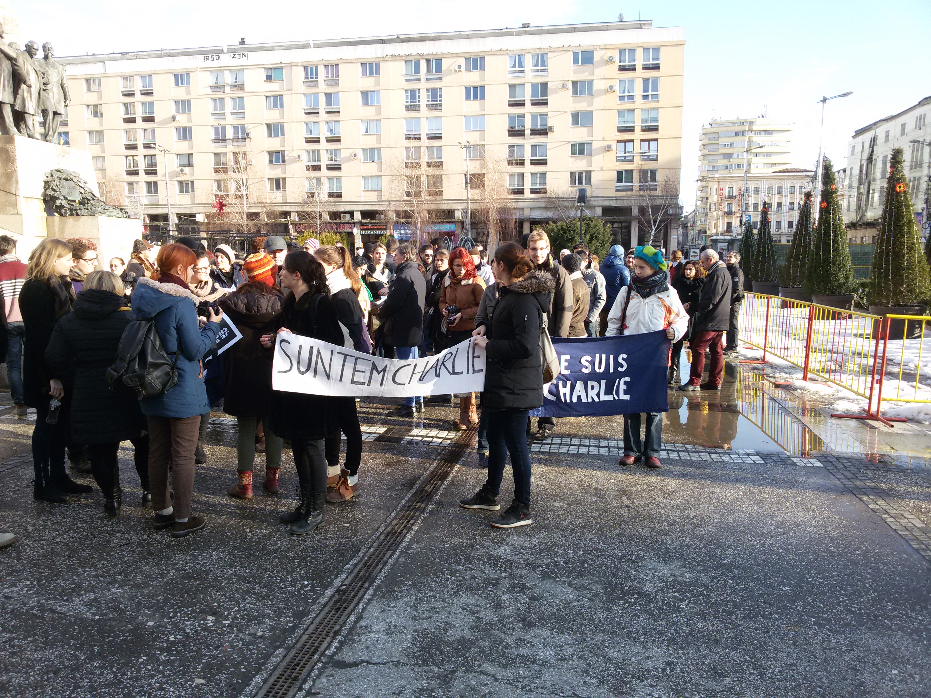 ”Je suis Charlie” –  acest mesaj devenit simbol al reacției față de crimele teroriste din Franța a putut fi citit pe pancarte, astăzi (11 ianuarie 2015), în Piața Unirii din Iași, punctul de start al unui marș al tăcerii.