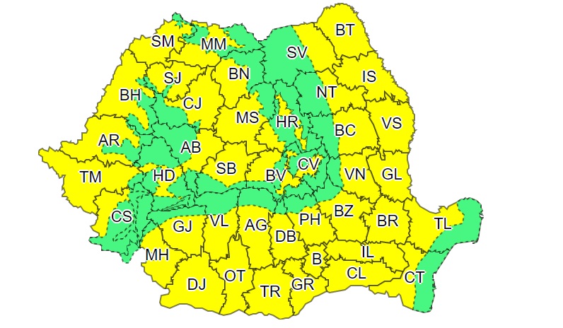 Temperaturile maxime, cu mult mai mari decât mediile climatologice specifice perioadei, se vor situa frecvent între 33 şi 36 de grade, mai ridicate până spre 37-38 de grade, în sud-vestul ţării, iar luni şi marţi în vest, nord-vest şi local în sud.