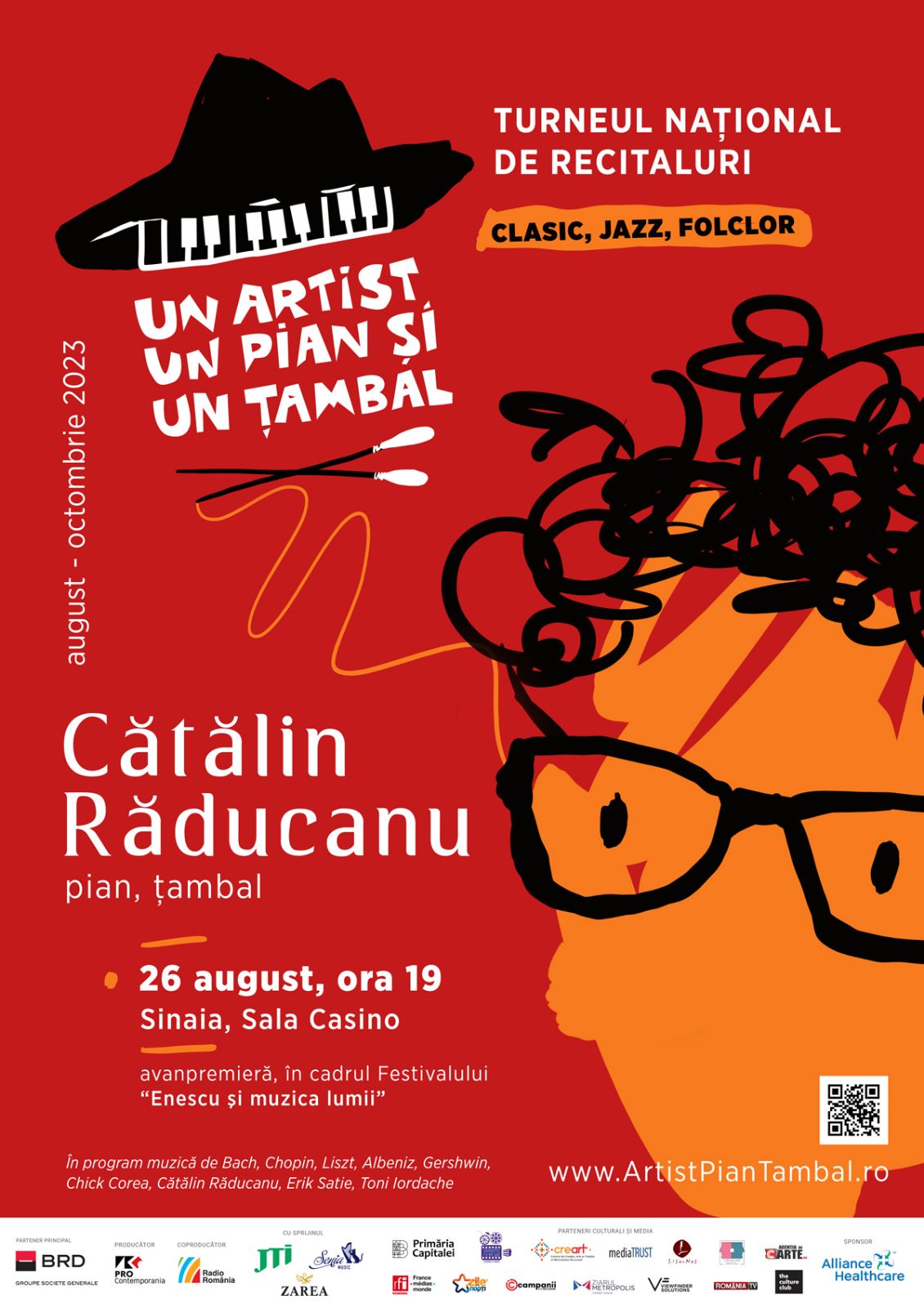 Concertele în aer liber de la Festivalul Internațional “Enescu și muzica lumii” vor alterna între 8 şi 31 august cu cele în interior, principala sală fiind Casino-ul Sinaia.      Sâmbătă, 26 august, la Sala Casino-ului din Sinaia, de la ora 19:00, solistul serii va fi Cătălin Răducanu – pian, ţambal, care va concerta în avanpremiera primei ediții a Turneului Naţional Un artist, un pian şi un ţambal cu un program care include lucrări de Bach, Chopin, Liszt, Albeniz, Gershwin, Corea, Satie, Cătălin Răducanu, Toni Iordache.  Din septembrie până în octombrie, pianistul Cătălin Răducanu va ajunge în comunități din întreaga țară, de la Ateneul Român, până la cele mai îndepărtate sate. Detalii pe www.ArtistPianȚambal.ro