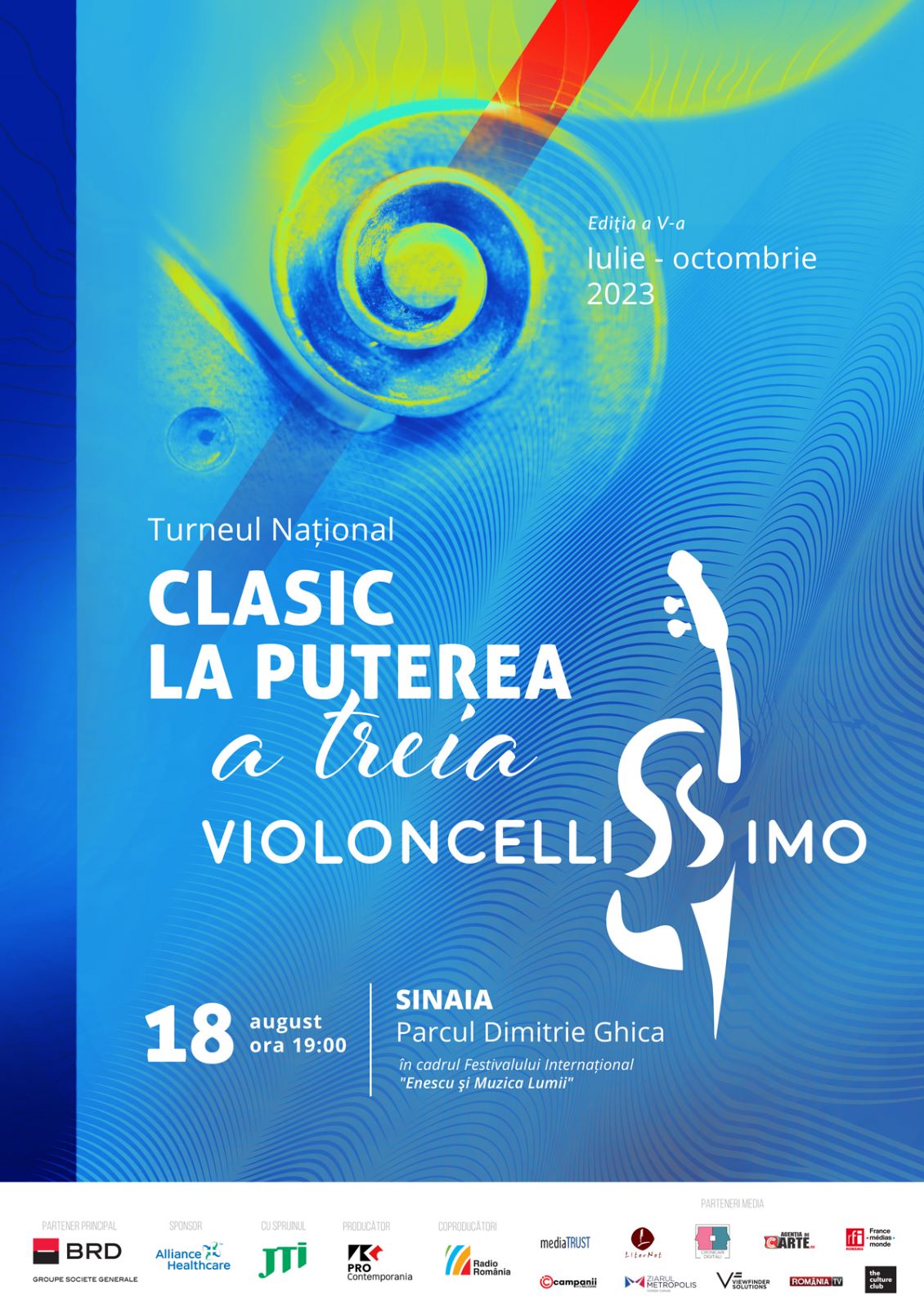 Turneul Naţional Violoncellissimo – Clasic la Puterea a III-a, anul acesta la cea de-a cincea ediție, va avea loc în lunile august-octombrie în întreaga țară și va ajunge în mari orașe ale României precum Iași, Cluj, Timișoara, Brașov, dar și peste hotare. Detalii găsiți pe www.violoncellissimo.ro.