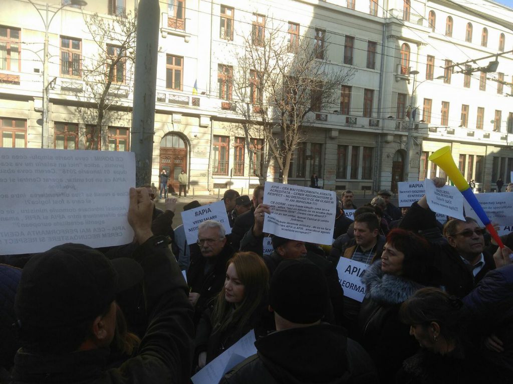 Începând de joi, 16 noiembrie, angajaţi ai APIA din mai multe judeţe din ţară au întrerupt lucrul în semn de protest faţă de perspectiva scăderii salariilor de la 1 ianuarie 2018, ca efect al aplicării OUG 79/2017 (Legea salarizării).