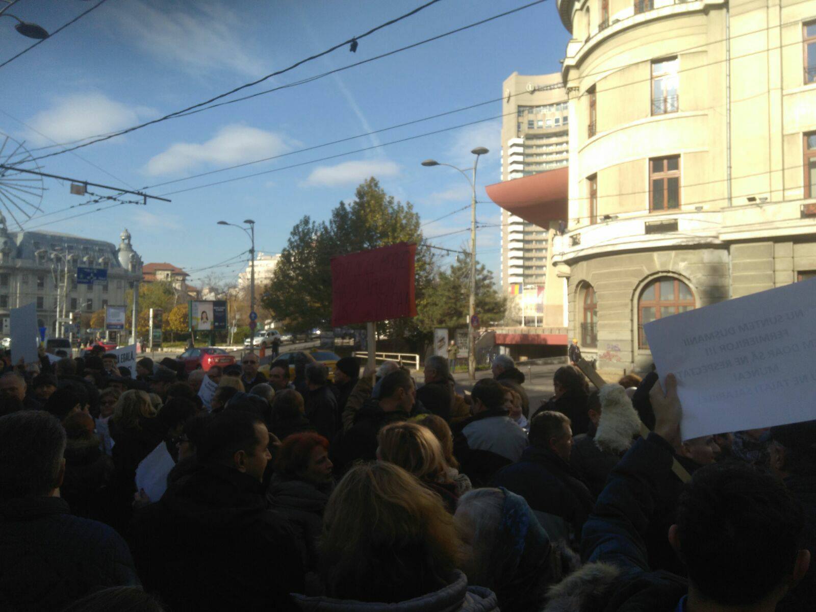 ‘Au fost proteste şi astăzi (luni, 20 noiembrie, n.r.) în majoritatea judeţelor din ţară. A fost suspendat pentru două ore lucrul, dar activitatea instituţiei nu a fost blocată pentru că după protest a fost reluată activitatea. Miercuri vom organiza miting la Bucureşti, să sperăm că vor fi auziţi’, a spus liderul sindical, Octavian Mateescu.