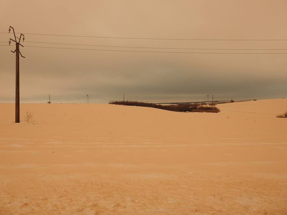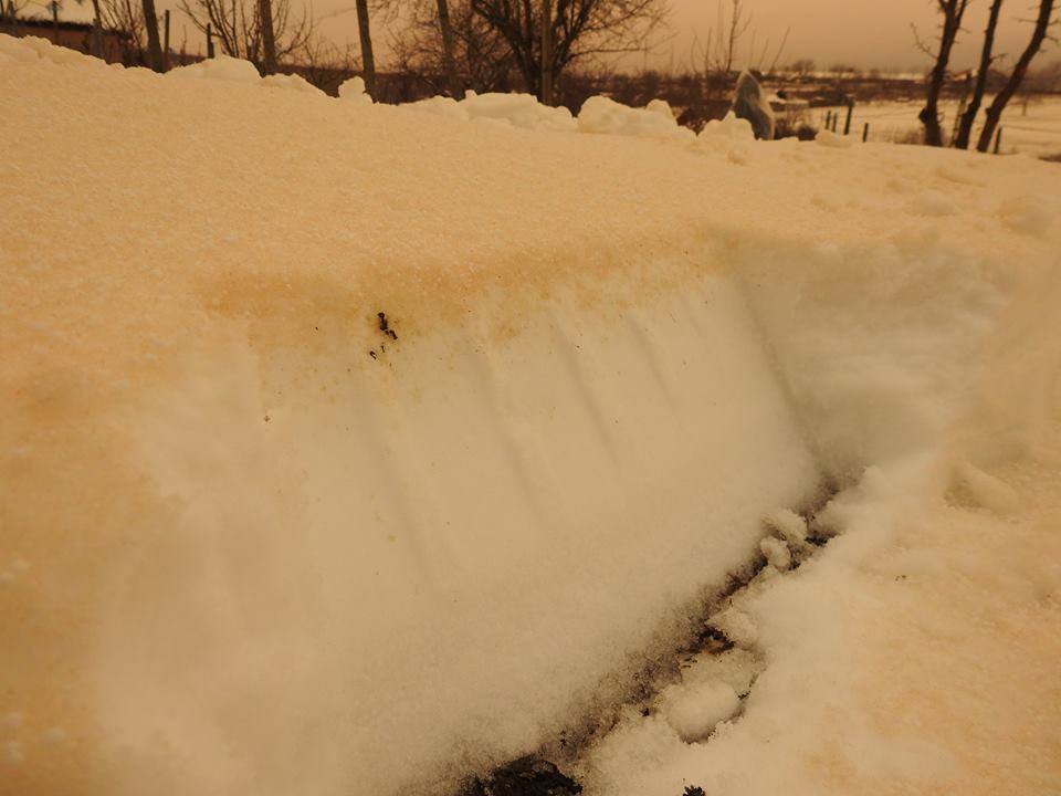 În judeţul Constanţa, la Tulcea, zăpada a căpătat culoarea portocalie din cauza curenţilor de aer amestecat cu nisip adus din deşertul Sahara.