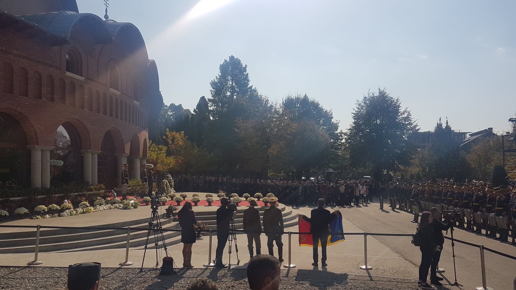 UPDATE, ora 12:15 – Peste 1.000 de oameni s-au strâns, sâmbătă, în curtea mănăstirii Curtea de Argeş, pentru a asista la ceremoniile dedicate reînhumării Reginei-Mamă Elena.