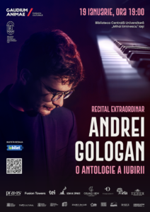 Andrei Gologan deschide stagiunea Gaudium Animae cu recitalul de pian „O antologie a iubirii”, pe 19 ianuarie, la Biblioteca Centrală Universitare „Mihai Eminescu”, Iași