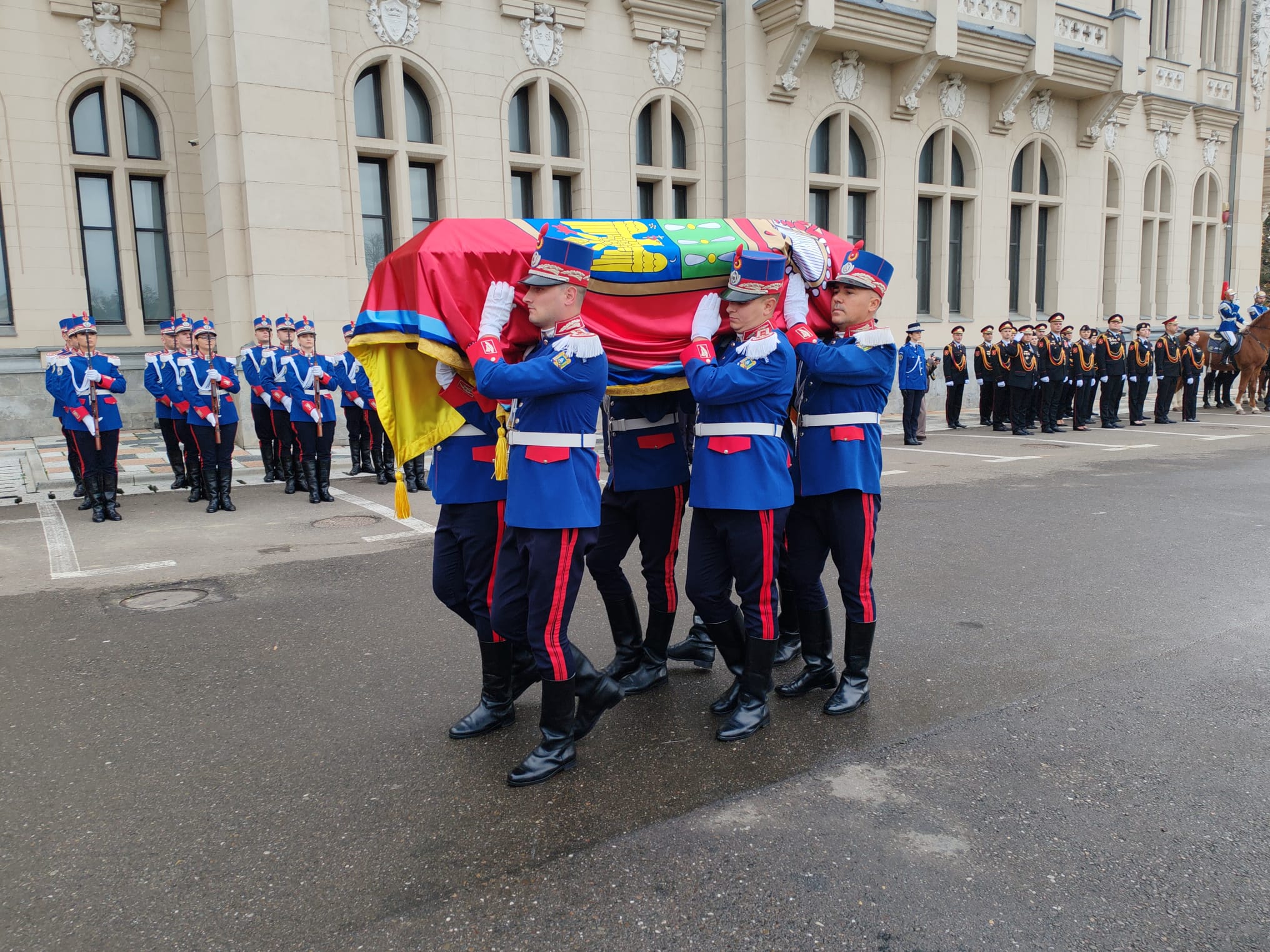 Sicriul cu rămășițele pământești a fost depus în Sala Voievozilor de la Palatul Culturii, unde publicul va putea să-și prezinte omagiile timp de 30 de zile.