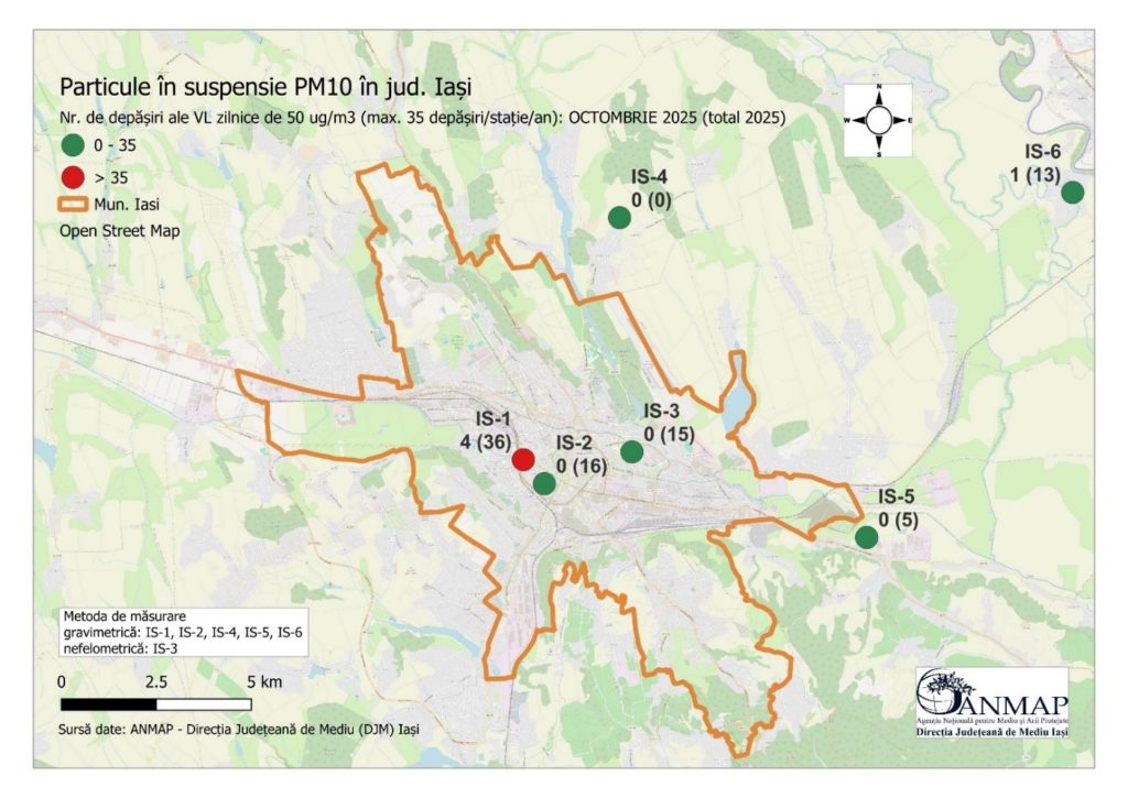 Calitatea aerului în municipiul Iași a înregistrat noi depășiri ale concentrațiilor de particule PM10, poluanți care afectează sănătatea locuitorilor.