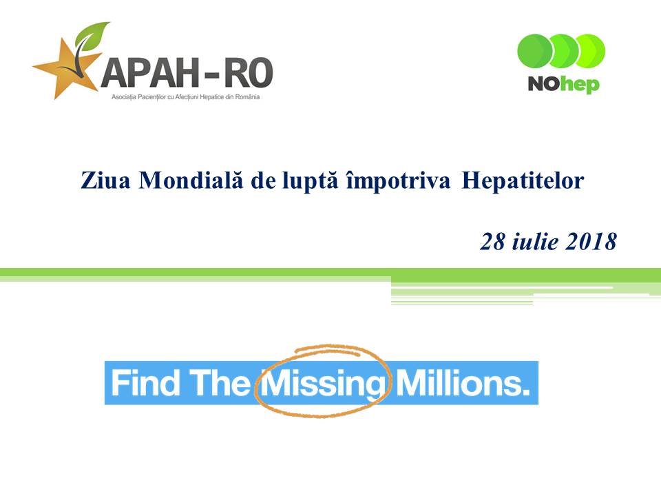 La nivel internațional, mesajul acestui an este ”Find the missing millions”, toți cei implicați în lupta pentru eliminarea afecțiunilor hepatice dedicându-se identificării mijloacelor adecvate pentru diagnosticarea persoanelor infectate. Hepatitele reprezintă boli infecțioase, de cele mai multe ori asimptomatice, fapt care generează pericole majore întrucât cei afectați pot transmite virusul în orice moment.