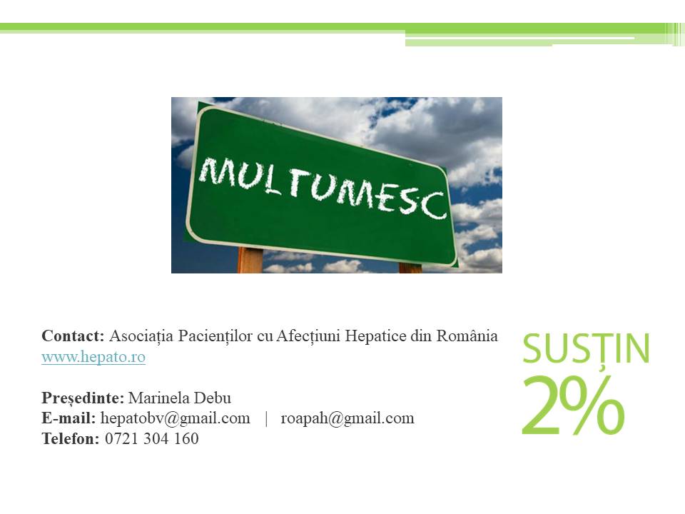 Conducerea MS, dna Ministru personal, este angajată ferm in indeplinirea acestor angajamente, având aplecare de la începutul mandatului atât către palierele de preventie primară si secundară ( ex campanii de constientizare/ promovarea vaccinării) cât si cele legate de tratament, inclusiv cele legate de transplantul hepatic.