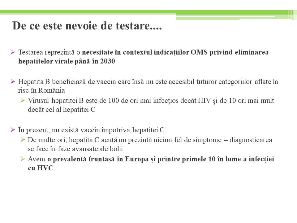 După cum stiți, în ultimii ani Ministerul Sănătății (impreună cu CNAS) a indeplinit anumite obiective importante propuse, legate de diagnosticul si tratamentul pacientilor cu hepatita virala B sau C; si, chiar in aceste zile continuă sa ducă la indeplinire urmatoarele ținte in lupta impotriva hepatitelor virale, având ca obiectiv ceea ce OMS a propus prin planul sau european – eradicarea infectiilor cu virusurile hepatitice B si C pină în anul 2030.