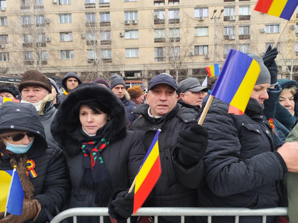 La prânz, sute de membri și simpatizanți ai formațiunilor AUR și SOS România au organizat acțiuni de protest în zona Pieței Unirii.