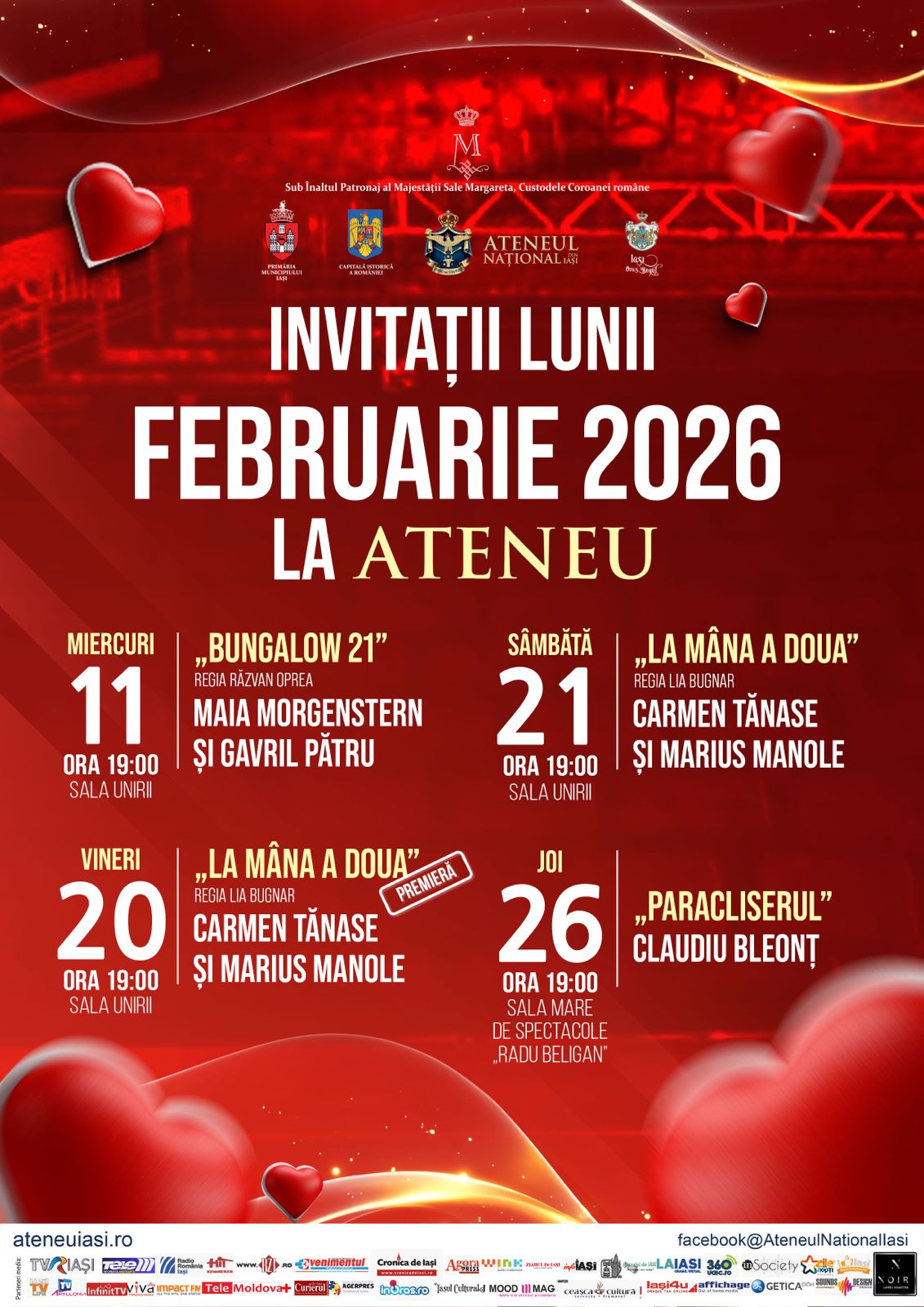 Luna februarie la Ateneul Național din Iași se anunță a fi o celebrare a artei dramatice, aducând în fața publicului o selecție remarcabilă de spectacole interpretate de cei mai îndrăgiți actori ai momentului. Programul acestei luni este conceput ca un periplu emoțional, oferind spectatorilor ocazia de a întâlni nume emblematice ale scenei românești în producții ce variază de la drama intensă la introspecția profundă și noutatea absolută a unei premiere mult așteptate.