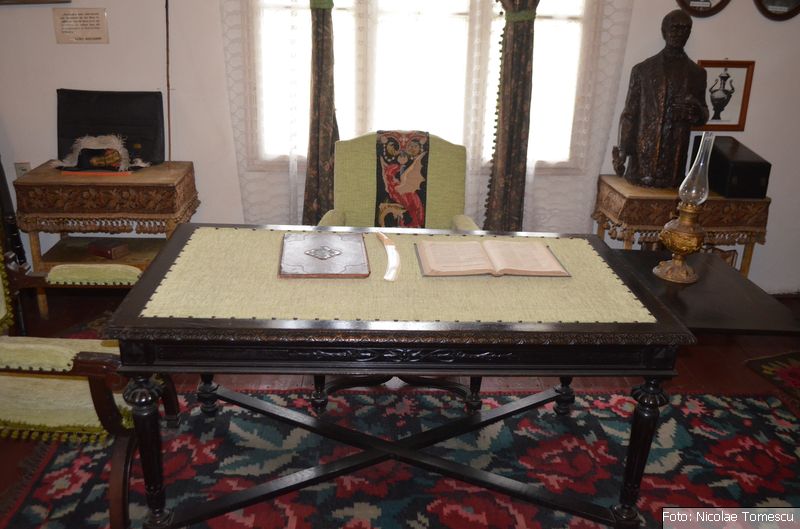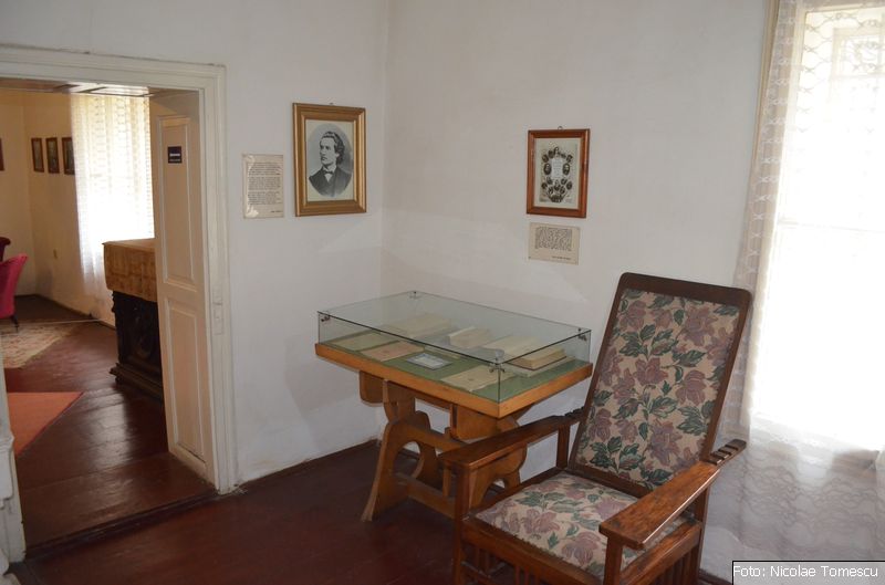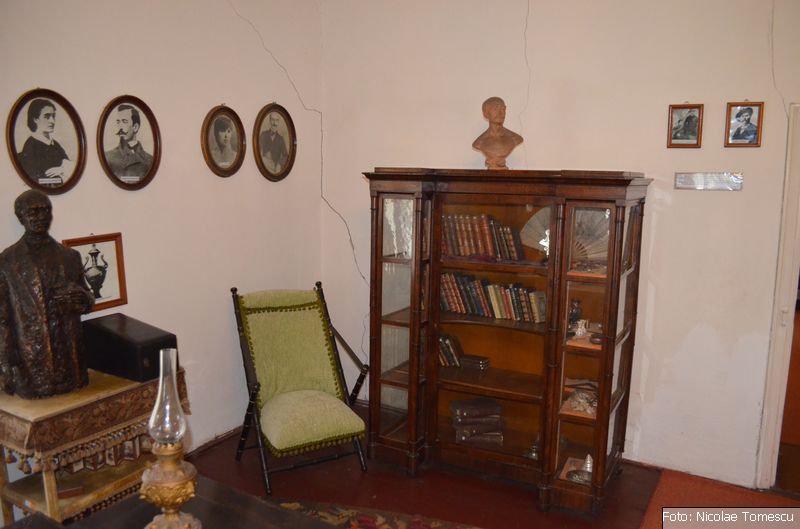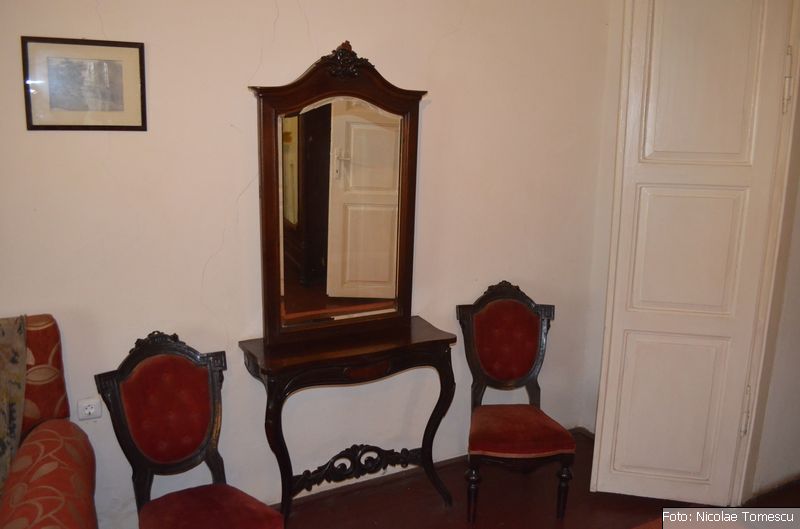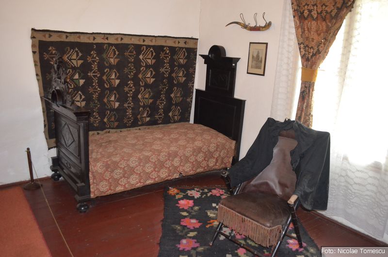 - patul poetului (în spatele unor uși de stejar se ascunde dormitorul, cu ferestrele încadrate de draperii grele, șifonierul cu oglinda venețiană în care „boierul” se ferchezuia, dis-de-dimineață, înainte să iasă în lume)