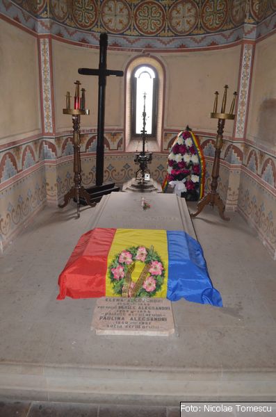 [1] În curtea conacului (între anii 1925-1927), a fost construit, din inițiativa Academiei Române și cu sprijinul Ministerului Artelor, un mausoleu asemănător ctitoriilor voievodale moldovenești; aici au fost strămutate, la 19 mai 1928, osemintele poetului, prozatorului, dramaturgului; înhumate, inițial, într-o criptă dintr-un colț al grădinii, au primit alături rămășițele vornicului Vasile Alecsandri (1792-1854) și ale Elenei Alecsandri (1800-1842) – aduse, prin grija nurorii lor, Paulina (1840-1921), de la Biserica „Sfântul Spiridon” din Iași. Mausoleul a fost inaugurat, festiv, două săptămâni mai târziu, la 3 iunie 1928, în prezența mai multor membri ai Academiei Române și a personalităților politice și culturale (îi amintesc pe Simion Mehedinți, I.G. Duca/ministrul instrucțiunii publice și cultelor, Alexandru Lapedatu/ministrul cultelor și artelor, episcopul Lucian Triteanu, D.C. Istrati, George G. Mârzescu, I. Onciul, colonelul Anghelescu/adjutant regal, Mihail Sadoveanu)…