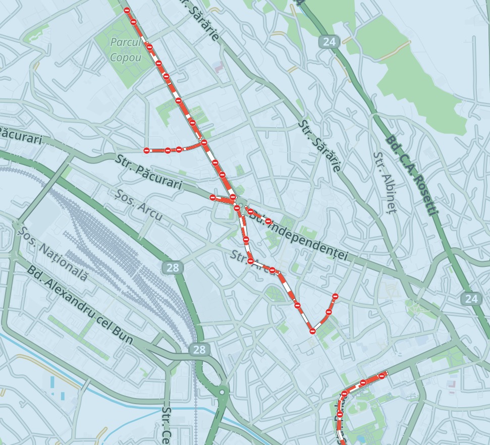 🔁 Traseele 28 și 42 circulă din Tg. Cucu pe linia de tramvai – Piața Unirii – Copou