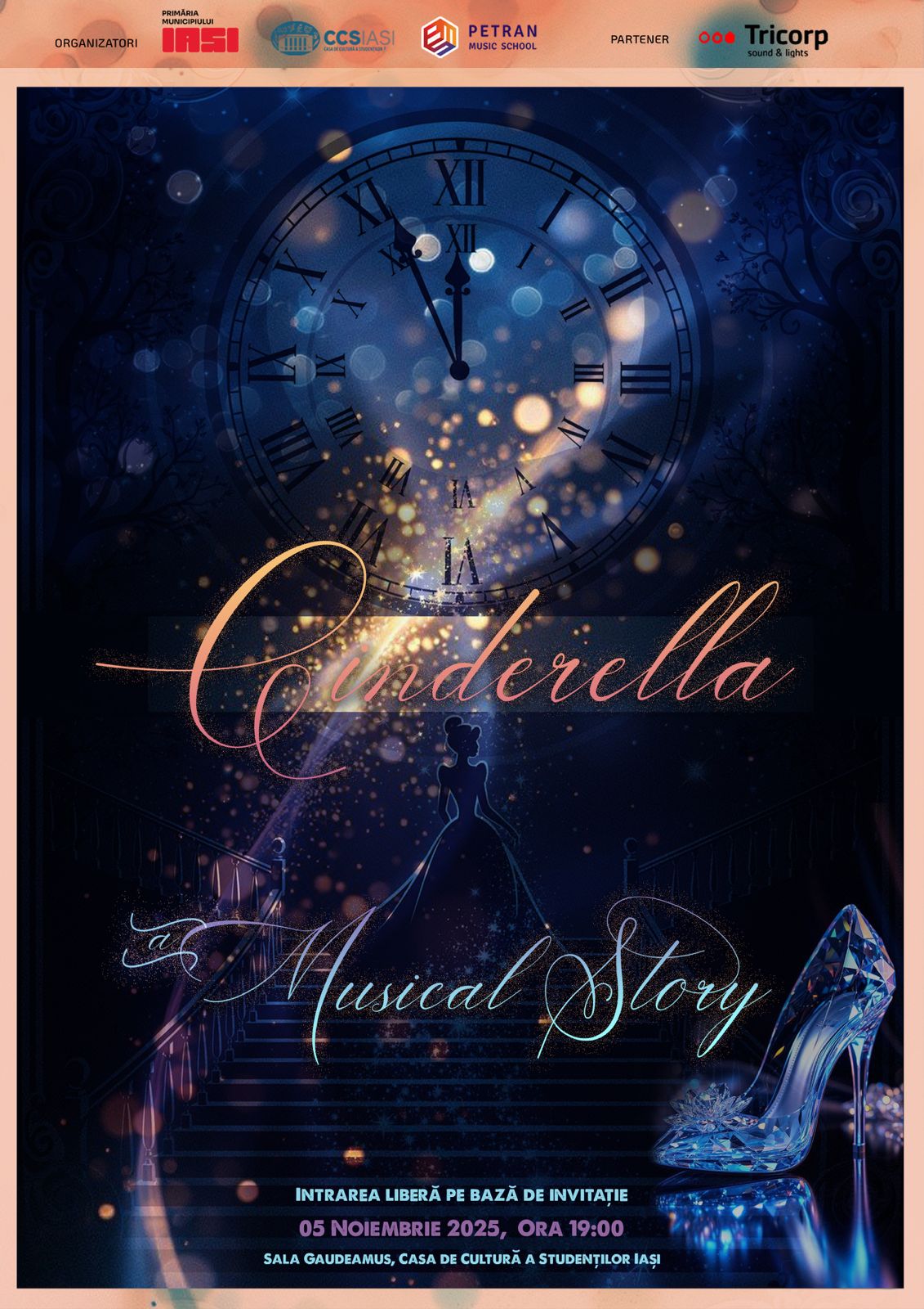 Casa de Cultură a Studenților Iași, împreună cu Petran Music School și Primăria Municipiului Iași prezintă miercuri, 5 noiembrie 2025, de la ora 19:00, în Sala „Gaudeamus” a Casei de Cultură a Studenților din Iași, un spectacol muzical de excepție: „Cenușăreasa”, o adaptare modernă a poveștii clasice care continuă să inspire generații întregi.