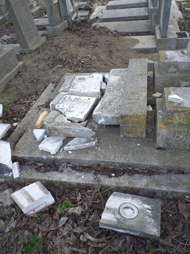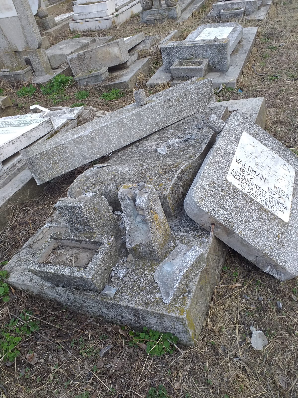 Preşedintele Federației Comunităților Evreiești din România – Cultul Mozaic, Aurel Vainer, şi-a exprimat într-un comunicat de presă indignarea şi profunda mâhnire,  după ce la începutul săptămânii trecute, 73 de monumente funerare au fost distruse.