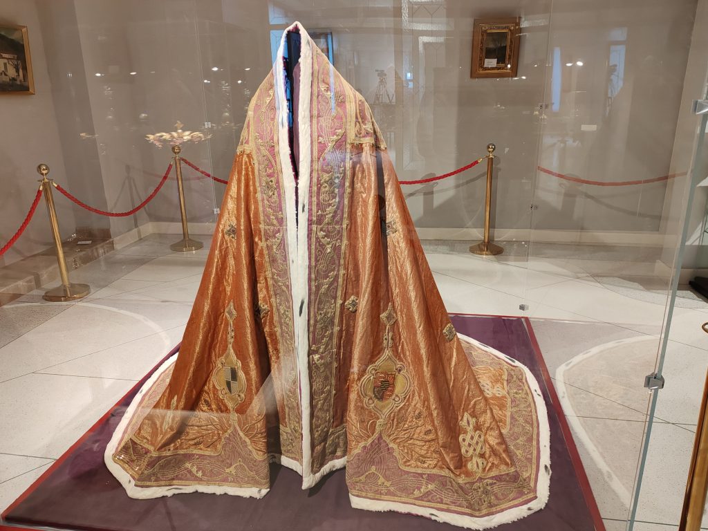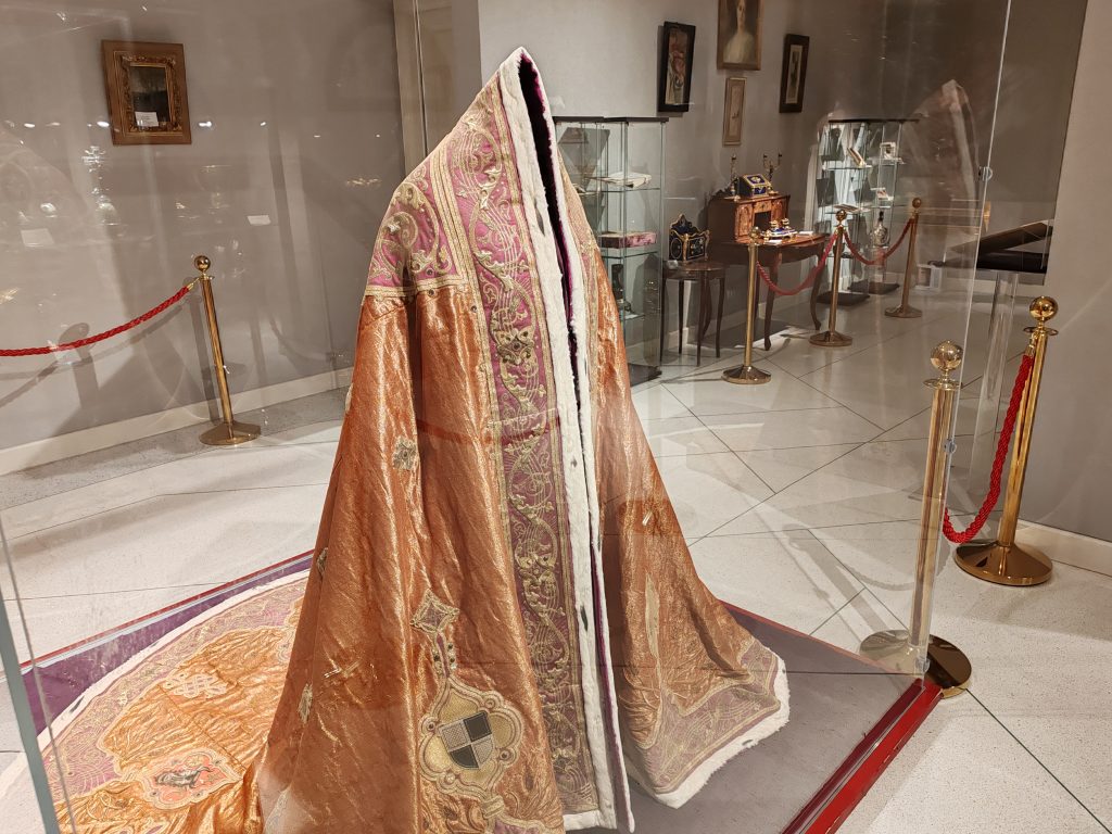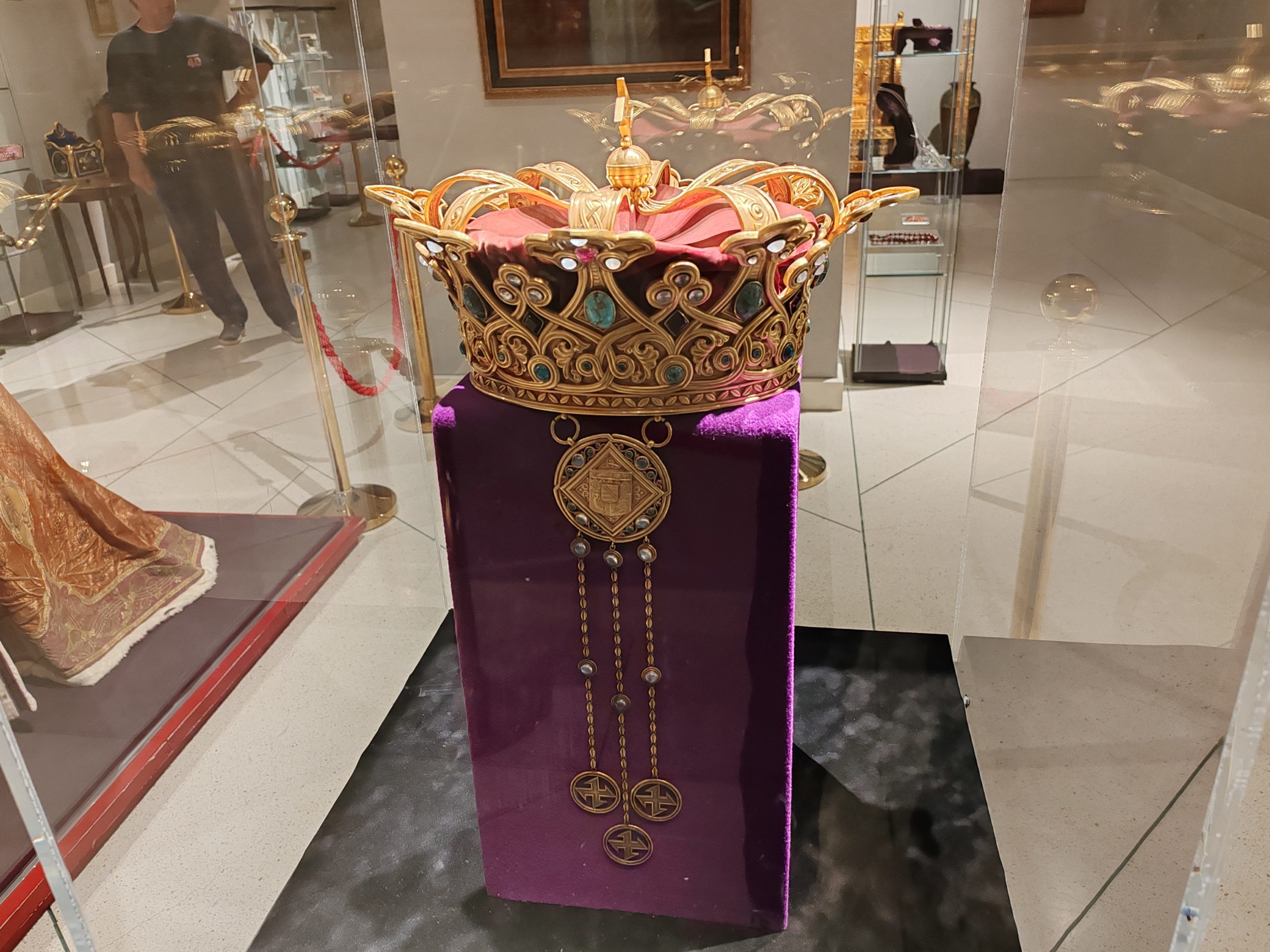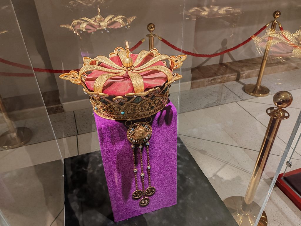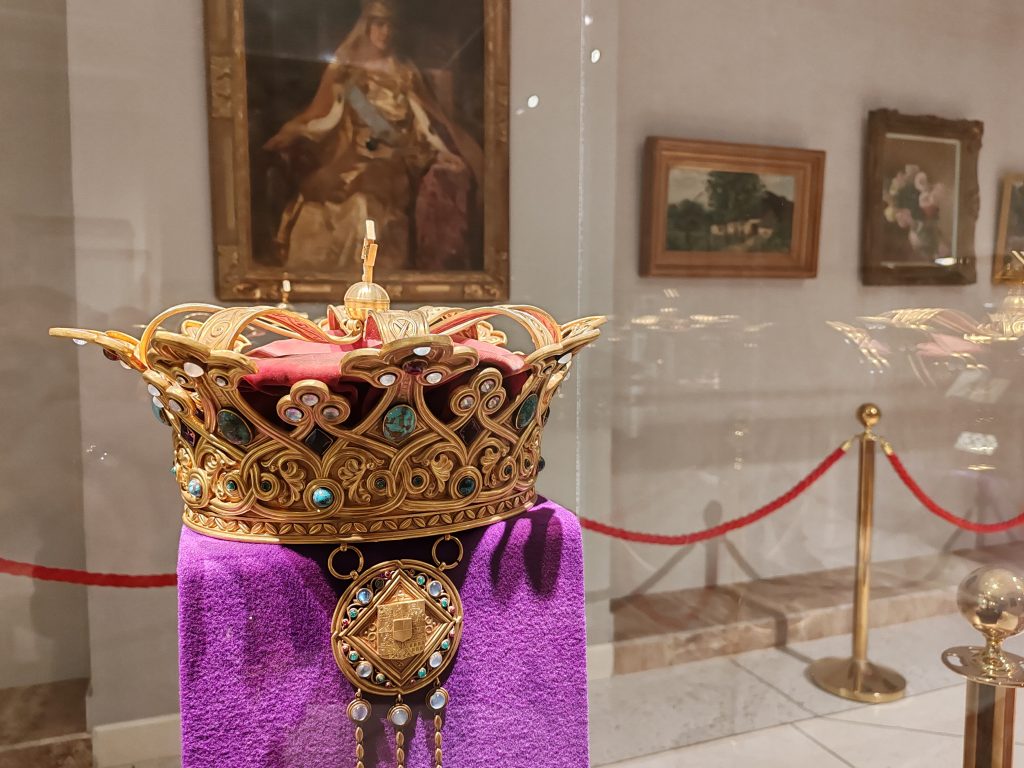 Coroana Reginei Maria a României este confecţionată din aur masiv şi cântăreşte aproape 2 kg, fiind evaluată la 25 de milioane de euro. (Radio Iași/ Constantin Mihai/ FOTO radioiasi.ro)