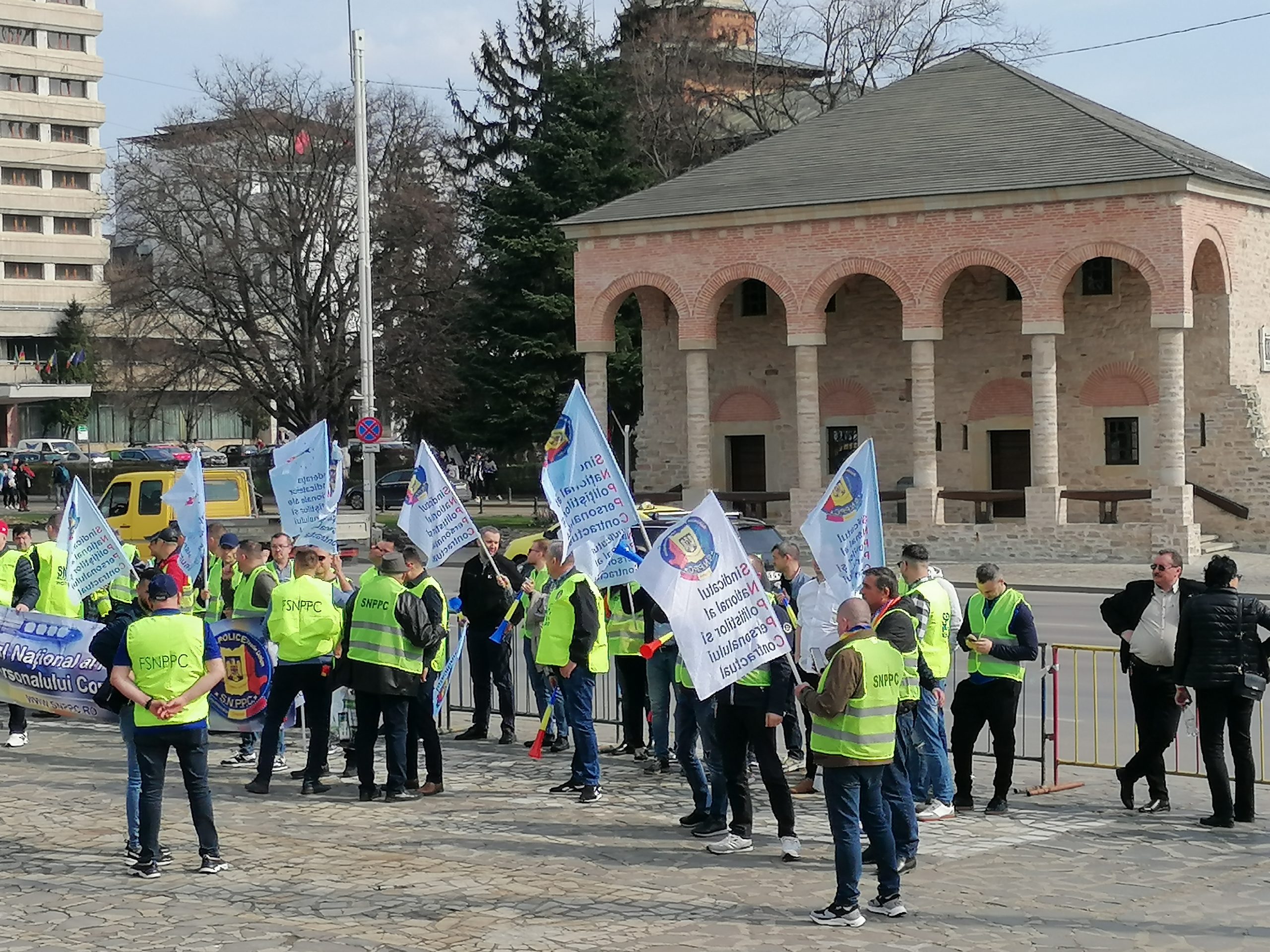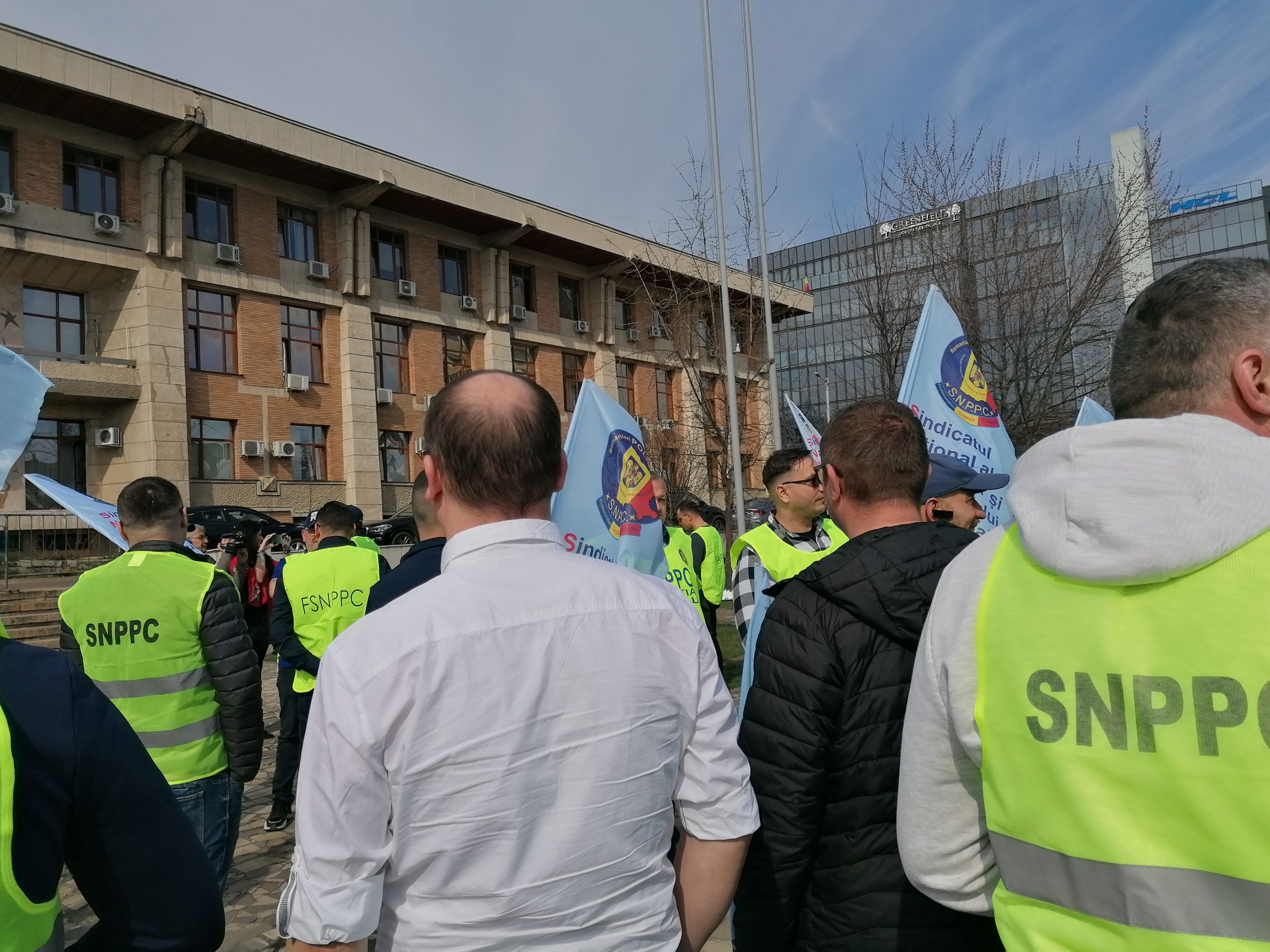 Aproximativ 300 de angajați ai Ministerului de Interne au protestat, astăzi, timp de două ore, în fața Prefecturii Iași.