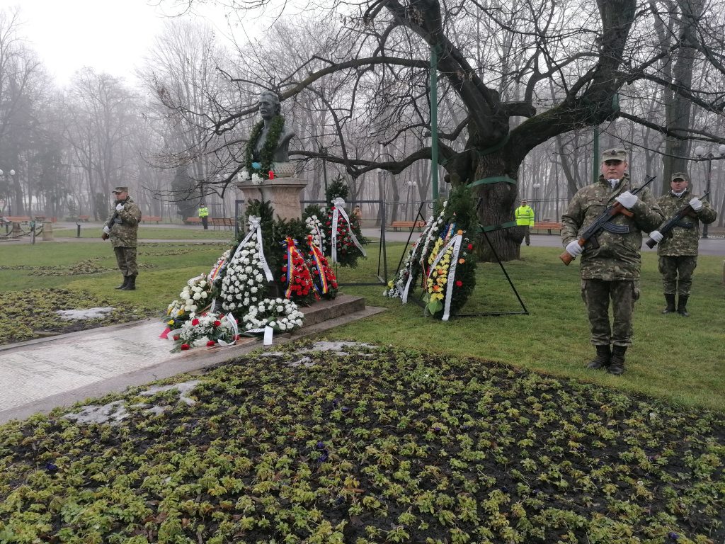 (AUDIO/FOTO) Iaşi: Coroane de flori depuse la statuia poetului Mihai Eminescu
