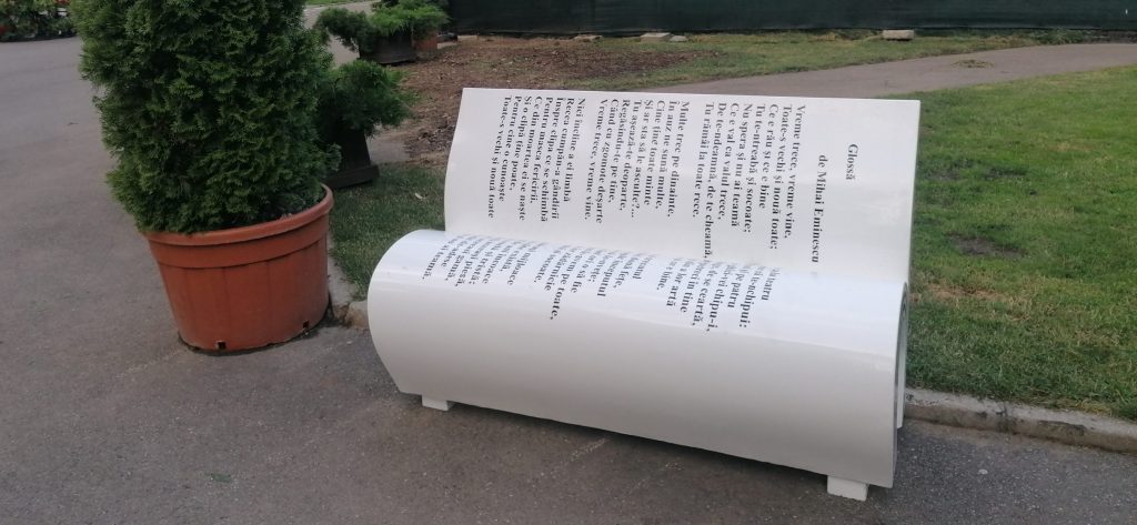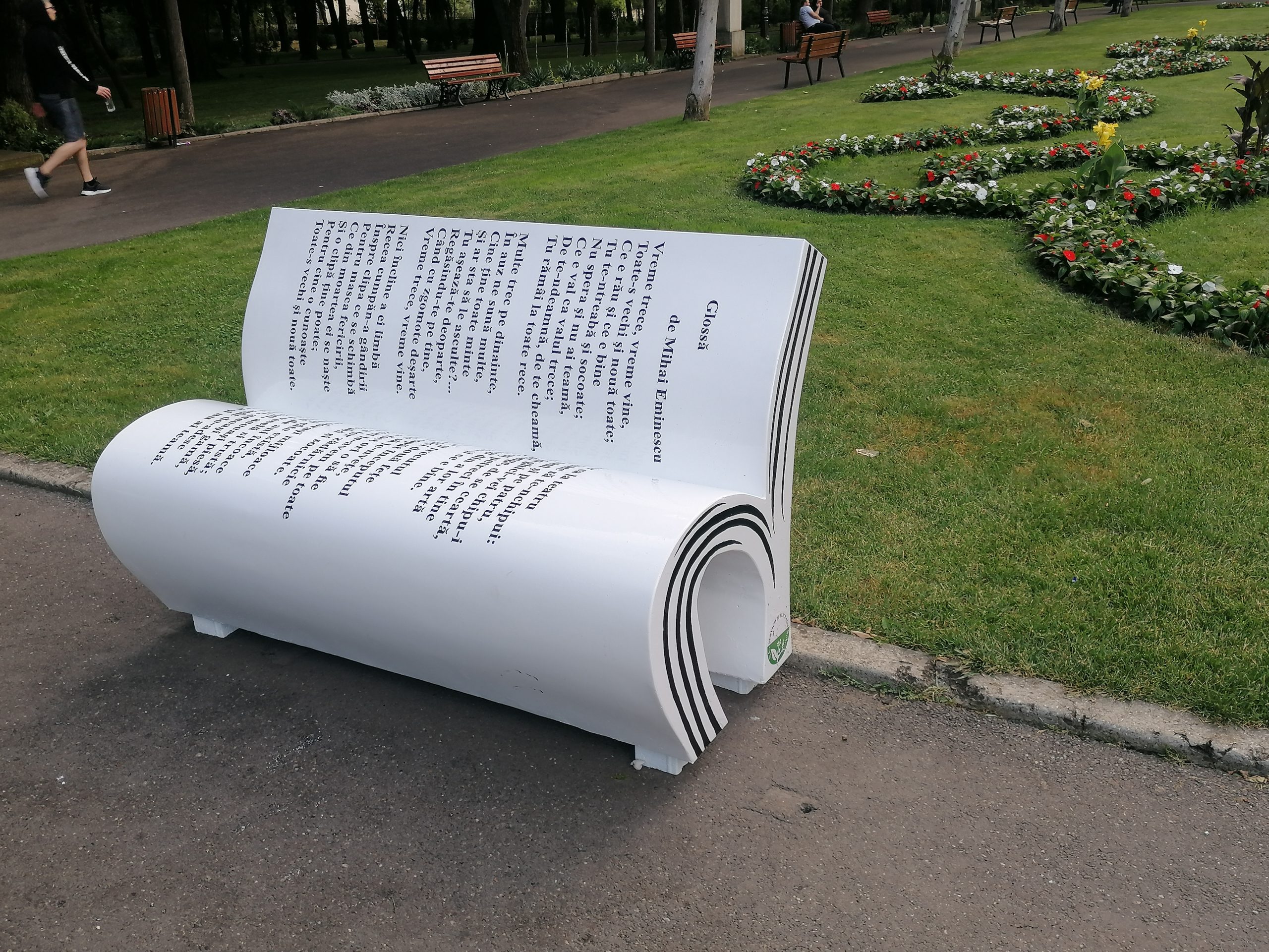 În Parcul Copou din municipiul Iași, în apropierea Teiului lui Mihai Eminescu, au fost amplasate bănci modelate sub formă de carte, personalizate cu versuri din poeziile marelui poet naţional.