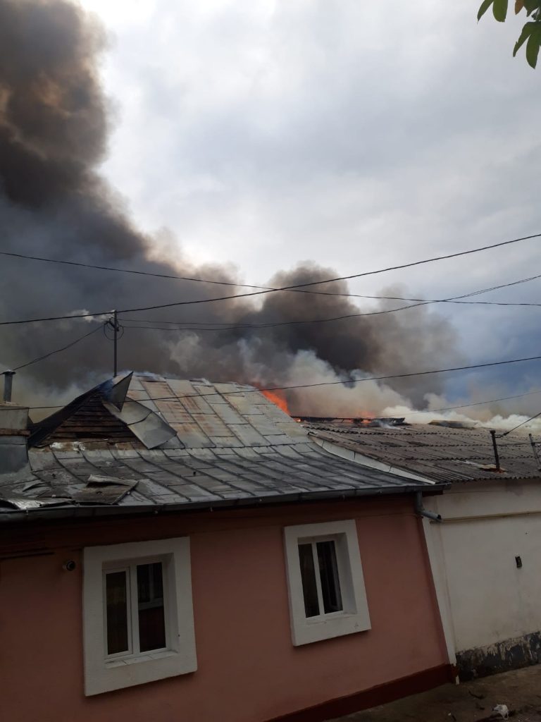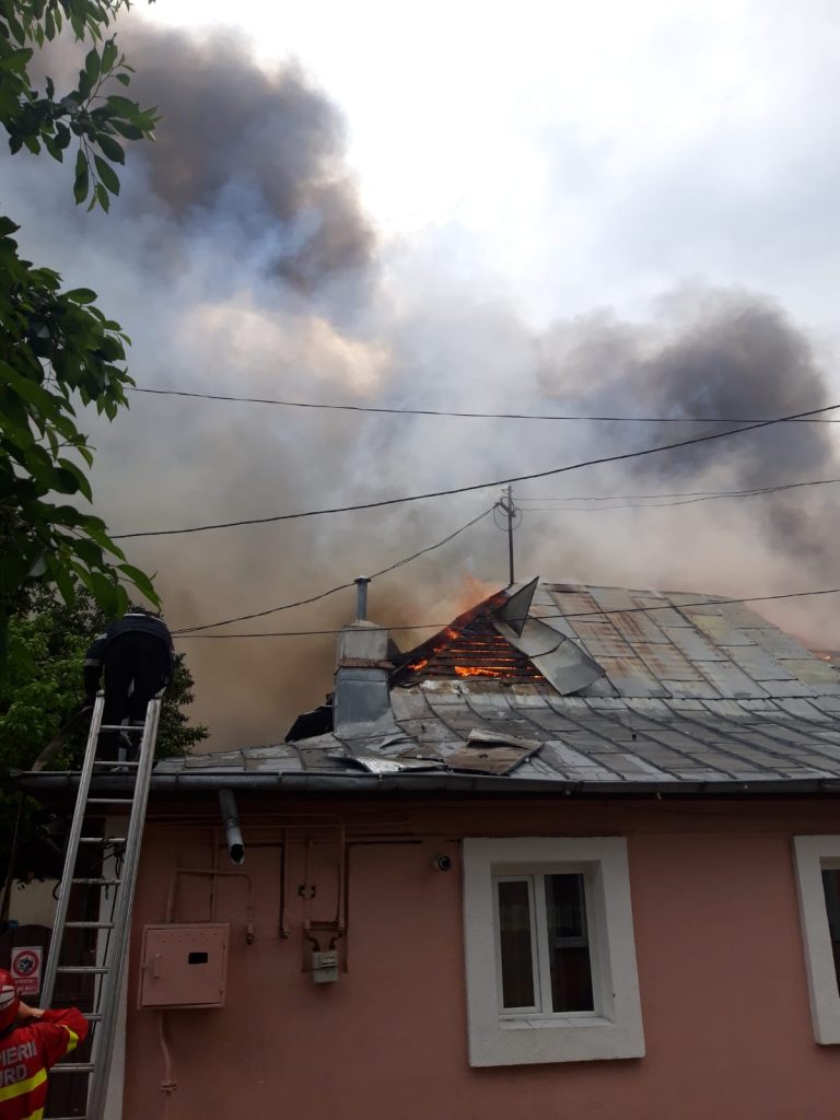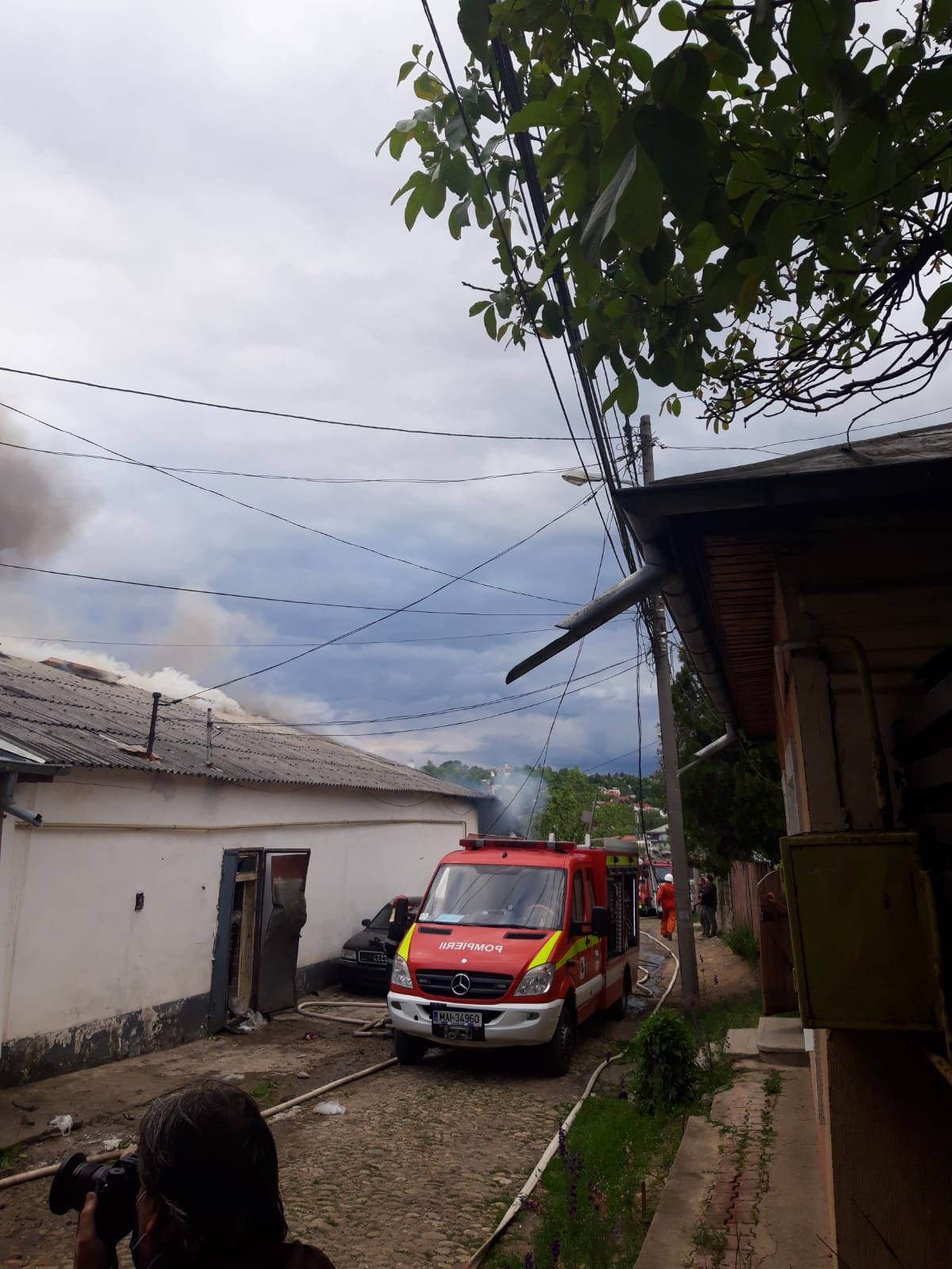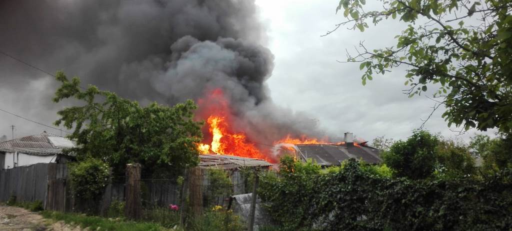 Focul s-a extins şi la casele din apropiere, pompierii intervenind pe o suprafaţă de aproximativ 1.000 de metri pătraţi.