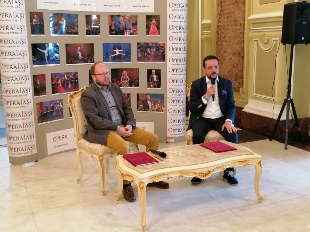 „Încă din primele zile de mandat am iniţiat acest proiect pe care l-am numit ‘Opera deschisă’, Opera aflată în parteneriat cu toate instituţiile culturale. Trecem astăzi în momentul în care internaţionalizăm acest proces, în sensul în care astăzi am încheiat parteneriatul cu Centrul Cultural German, vrem să încheiem un parteneriat pe 9 iunie cu Institutul Francez iar la sfârşitul lunii iunie cu British Council. Ne dorim să lucrăm pe proiecte punctuale, să reuşim să atragem finanţări, astfel încât publicul ieşean să se bucure de aceste colaborări pe care le iniţiem astăzi. Vor veni solişti din Germania care să cânte pe scena teatrului liric din Iaşi. La rândul nostru ne dorim ca soliştii noştri, instrumentişti şi balerini să poată evolua pe scenele europene într-un cadru instituţionalizat.”