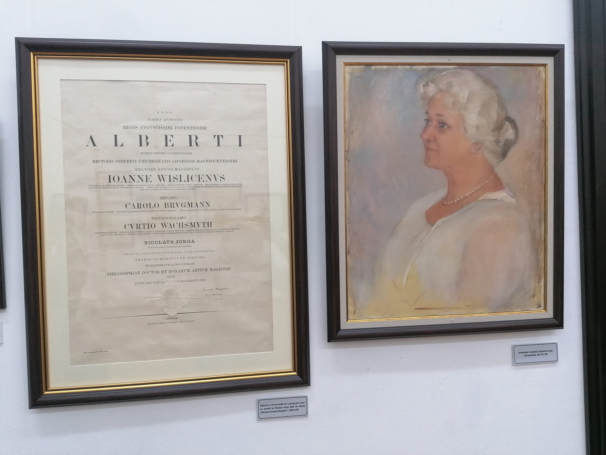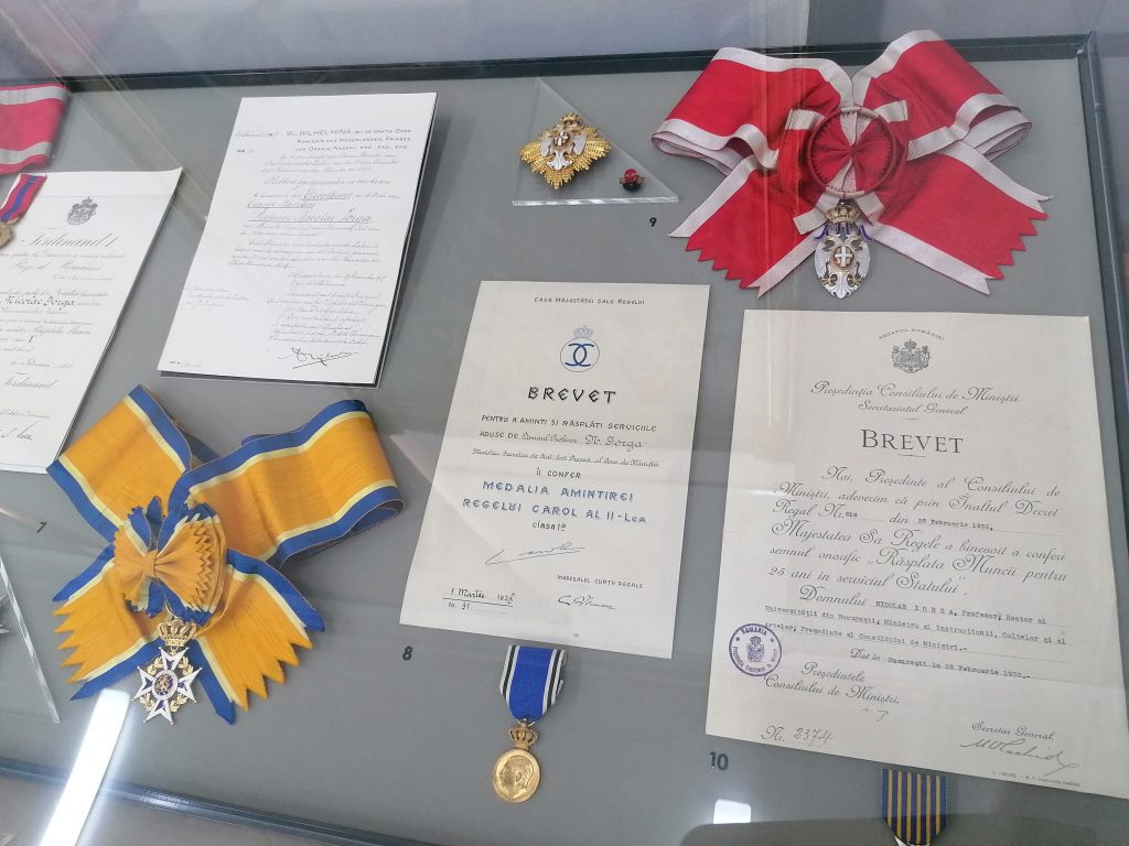 Curatorul expoziției, Cristina Păiușan Nuică, a vorbit despre importanța exponatelor care conturează viața lui Nicolae Iorga: ”Această expoziție folosește pe simeză, veți vedea, cele mai importante piese donate de dl. profesor, pornind de la buletinul de naștere din 5 iunie 1871, apoi foaia matricolă de la Liceul din Botoșani, diploma Universității din Iași, a fost absolvent al facultății de Litere, secția Istorie, diploma de doctor de la Leipzig și, așa cum am gândit-o noi, o istorie a Europei în medalii și decorații, pentru ca lumea să înțeleagă aliura lui europeană și ce a însemnat de fapt istoricul, fondatorul, chiar și omul politic Iorga pentru România.”