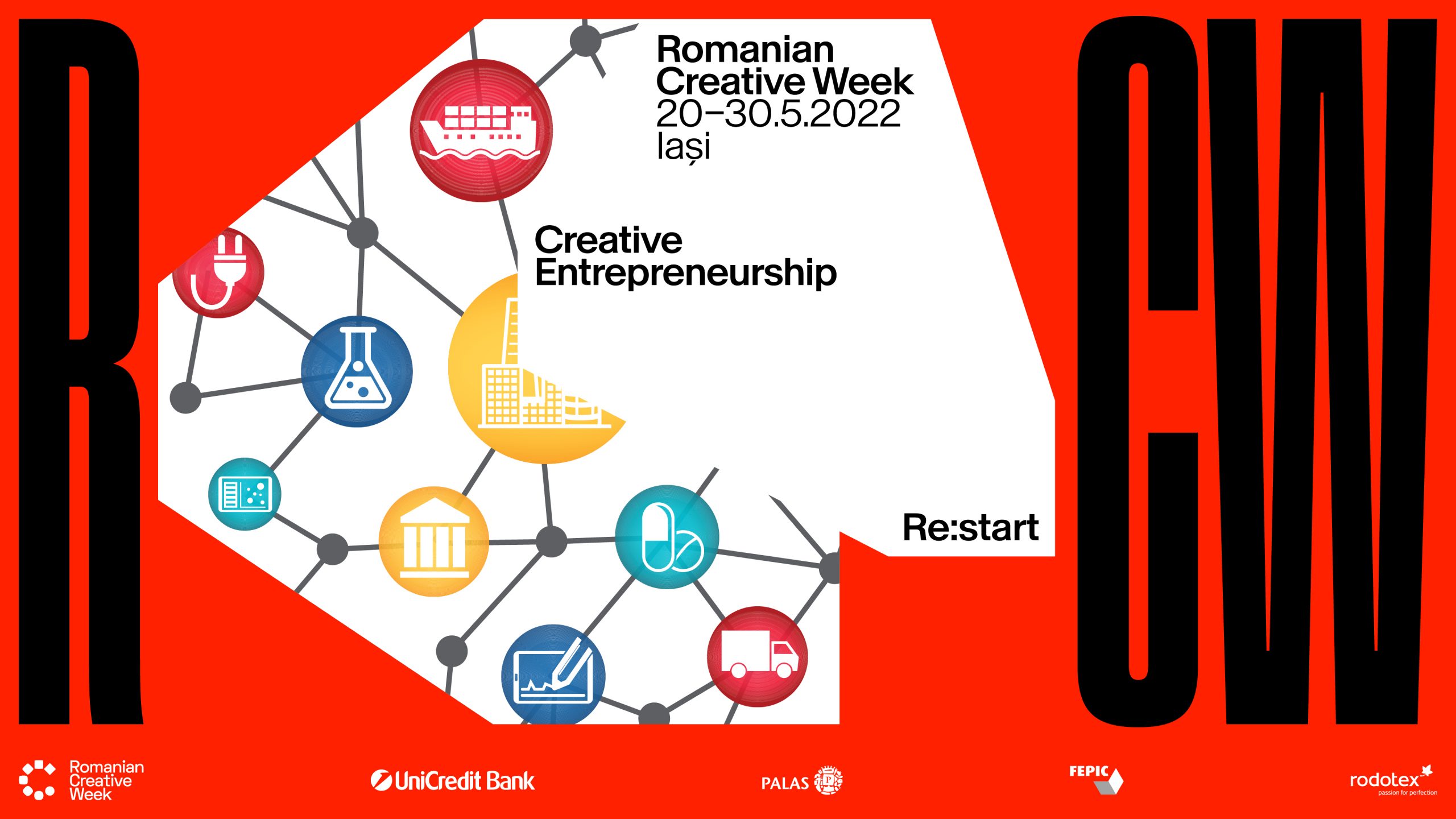 Romanian Creative Week este un eveniment organizat de Federația Patronatelor din Industriile Creative, singura federație patronală reprezentativă la nivel național care activează în sectorul Industriilor Creative din România, avându-i drept parteneri pe: Primăria Municipiului Iași, Palas, Ministerul Culturii, Complexul Muzeal Național Moldova Iași, Muzeul Național al Literaturii Române Iași, Universitatea Națională de Arte „George Enescu Iași”, Universitatea de Medicină și Farmacie „Gr. T. Popa” Iași, Universitatea „Al.I. Cuza” Iași, UniCredit Bank, glo™, BCR, Raiffeisen Bank, Lancome, Philips, Vodafone, Rodotex, Greenfield Copou, Freudenberg, DPD, Lenovo, Samsung, Volvo, Red Bull, Polirom, Uniunea Artiștilor Plastici Iași, StakeBorg, Code 932, FONTIS, Institutul Cultural Francez, IndieRO, Spitalul Militar Iași, Școala „Gheorghe Asachi” Iași, Direcția Apelor Prut, PRO TV, Kiss FM, TVR Iași, Agerpress.