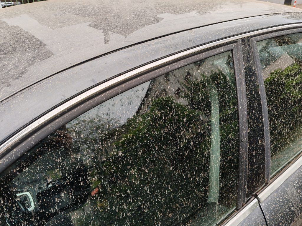 Încă din zorii acestei zile, un strat de nisip fin s-a depus sub formă umedă la sol și s-a așezat pe mașini după ploile slabe de noaptea trecută.