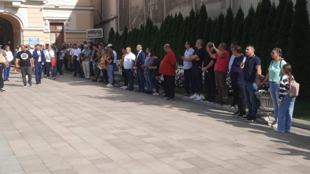 În fața primăriei municipiului, George Simion i-a solicitat lui Mihai Chirica demisia din funcția de primar, catalogându-l pe acesta ca fiind o persoană coruptă.