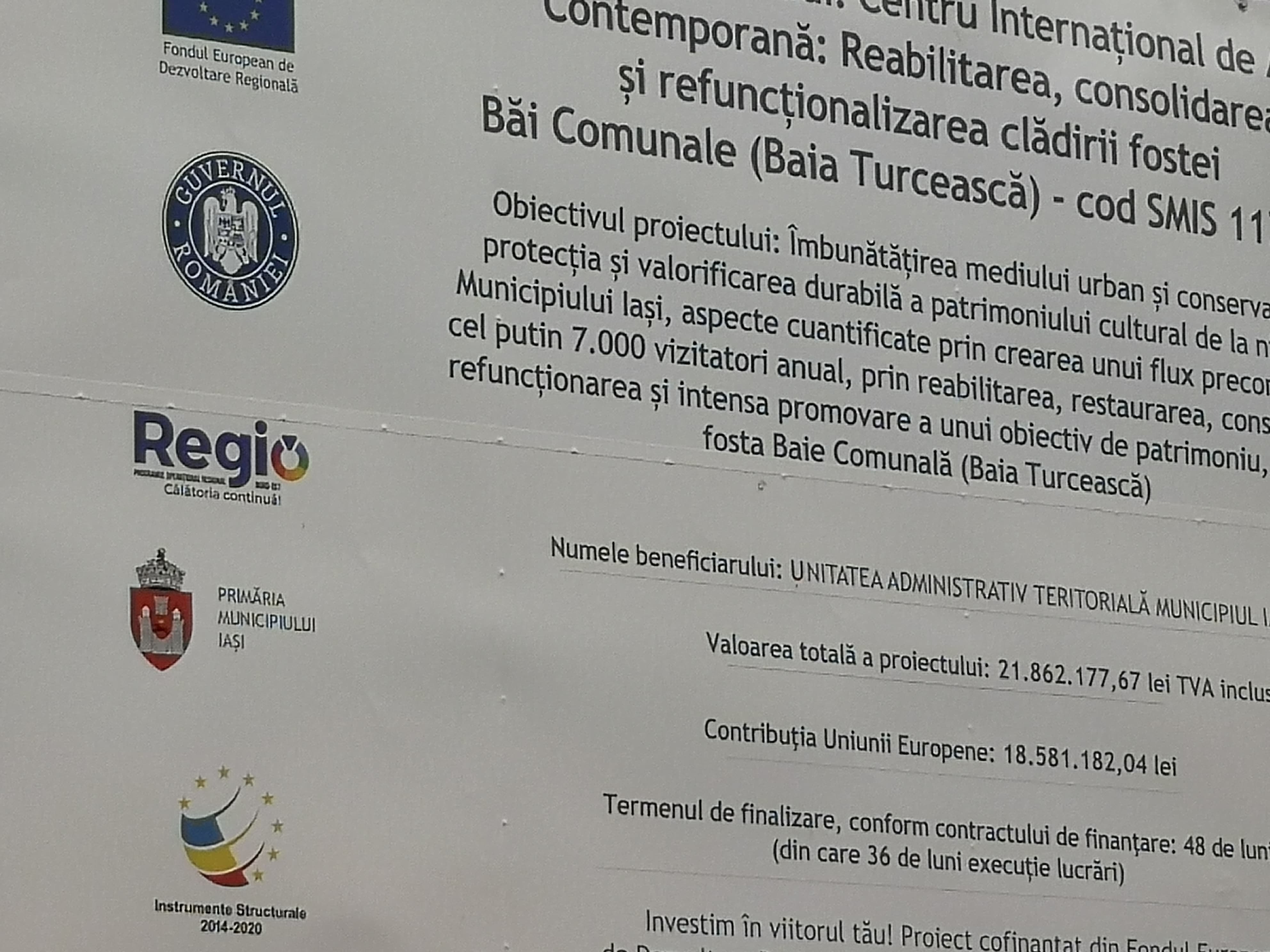 Lucrările de reabilitare şi consolidare a clădirii fostei Băi Turceşti din municipiul Iaşi, sunt în grafic. Aici va funcţiona Centrul Internaţional de Artă Contemporană“.