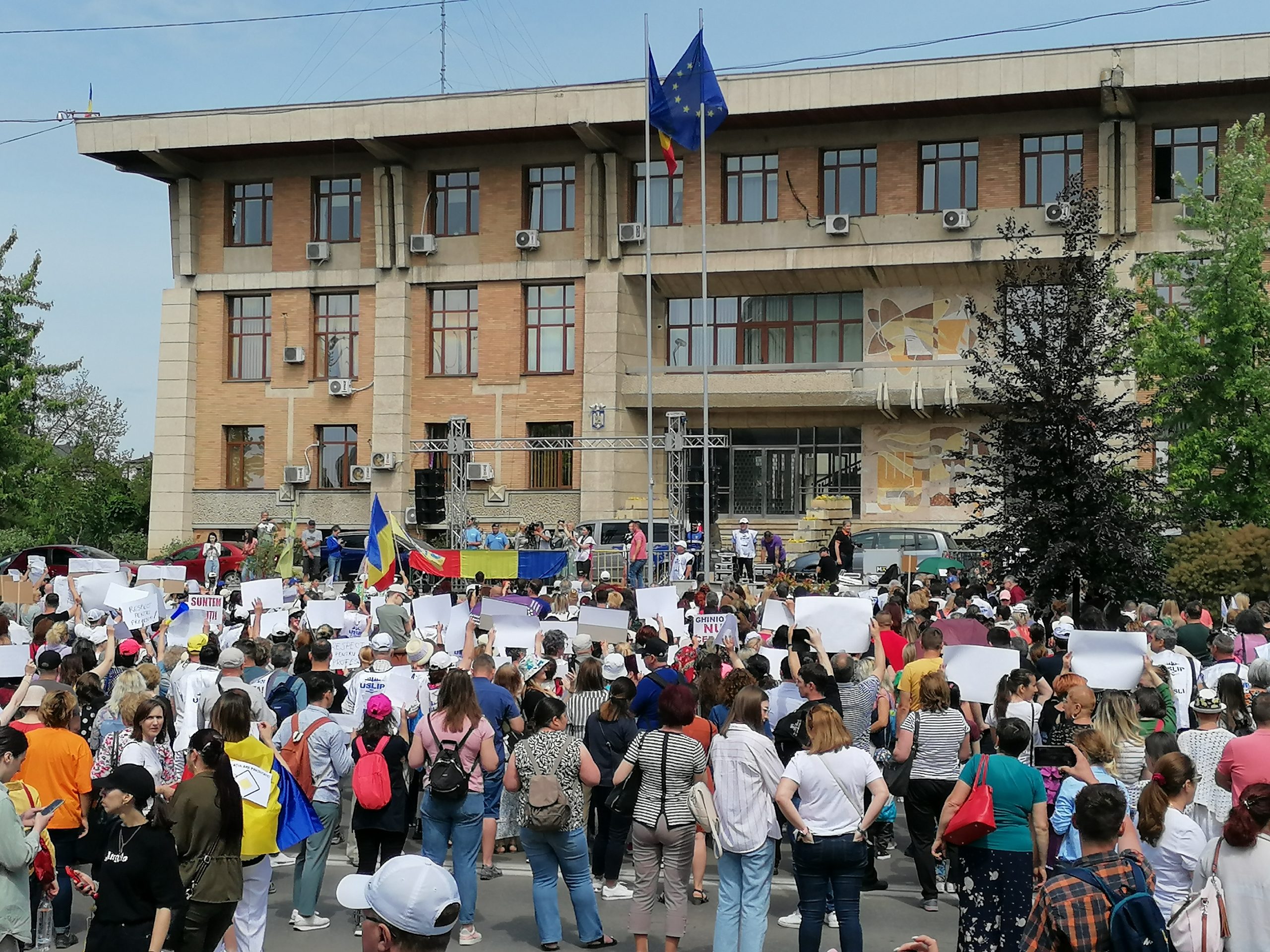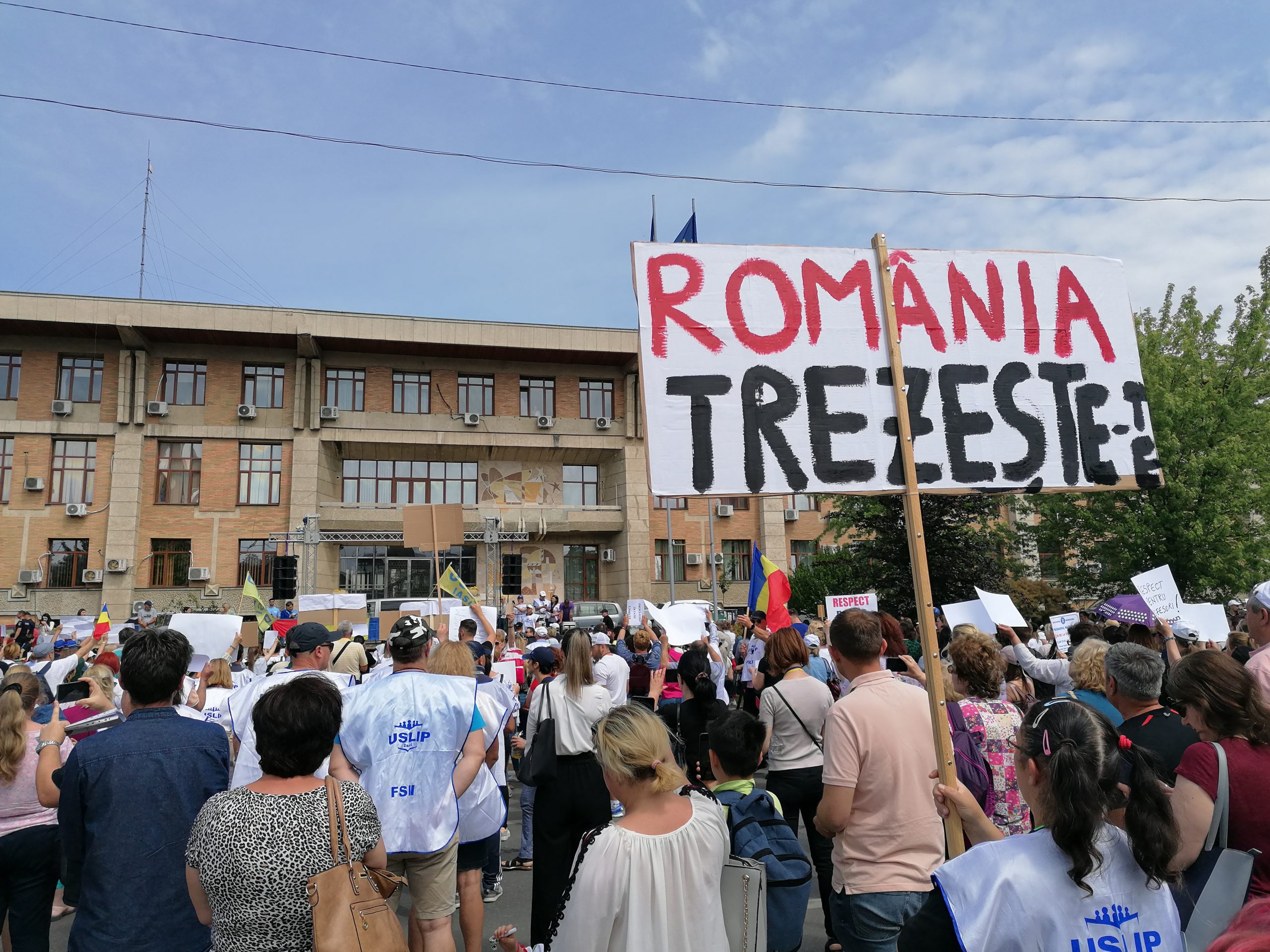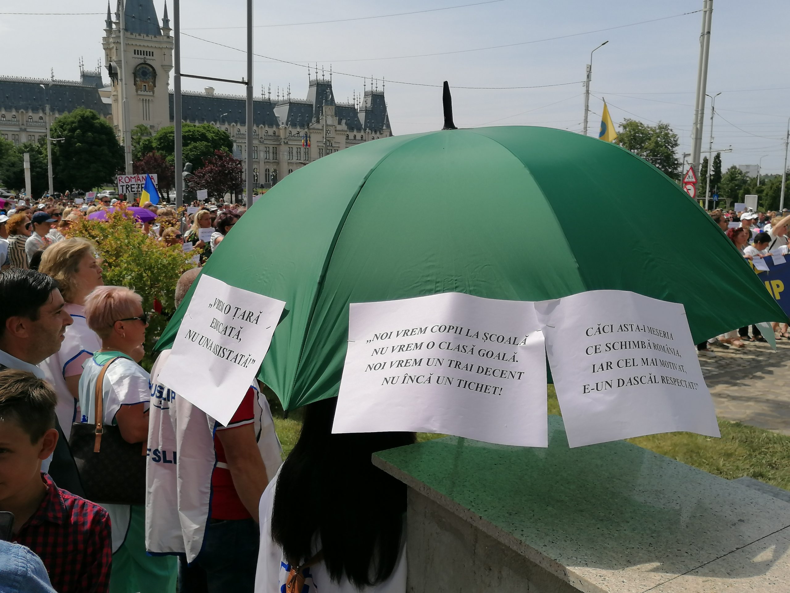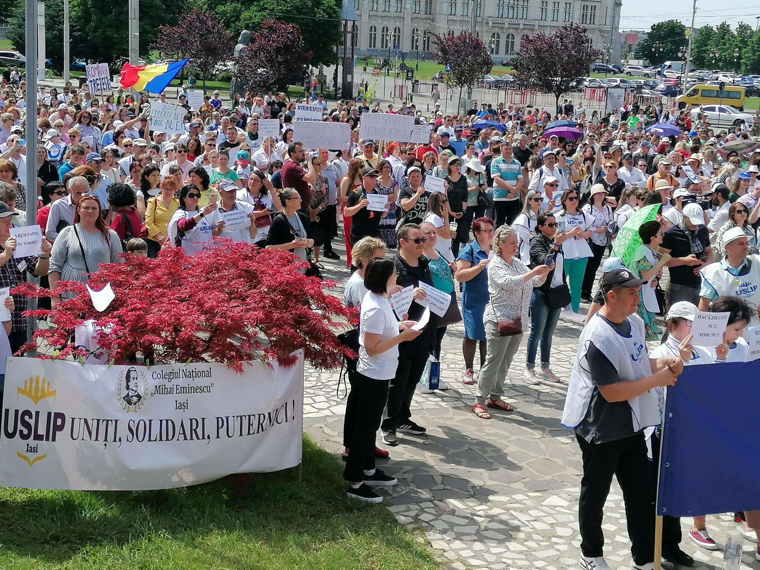 La Iași, peste 2.500 de profesori protestează la această oră, în fața Prefecturii, nemulțumiți de salarii, de statutul cadrelor didactice dar și de starea învățământului românesc: